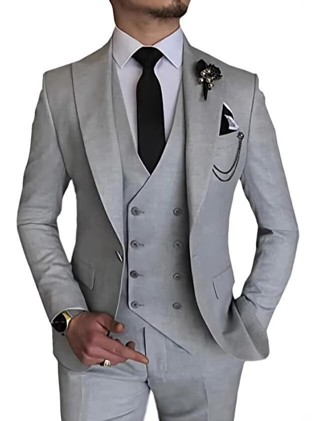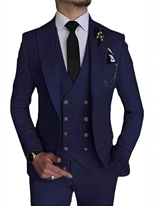 メンズ フォーマルスーツ セットアップ 3点セット スリムフィット タキシード ジャケット ベスト ジレ スラックス パンツ ネクタイ付属 結婚式 披露宴 パーティー 冠婚葬祭 ビジネス ライトビジネス オールシーズン対応 綿混紡 ウォッシャブル
