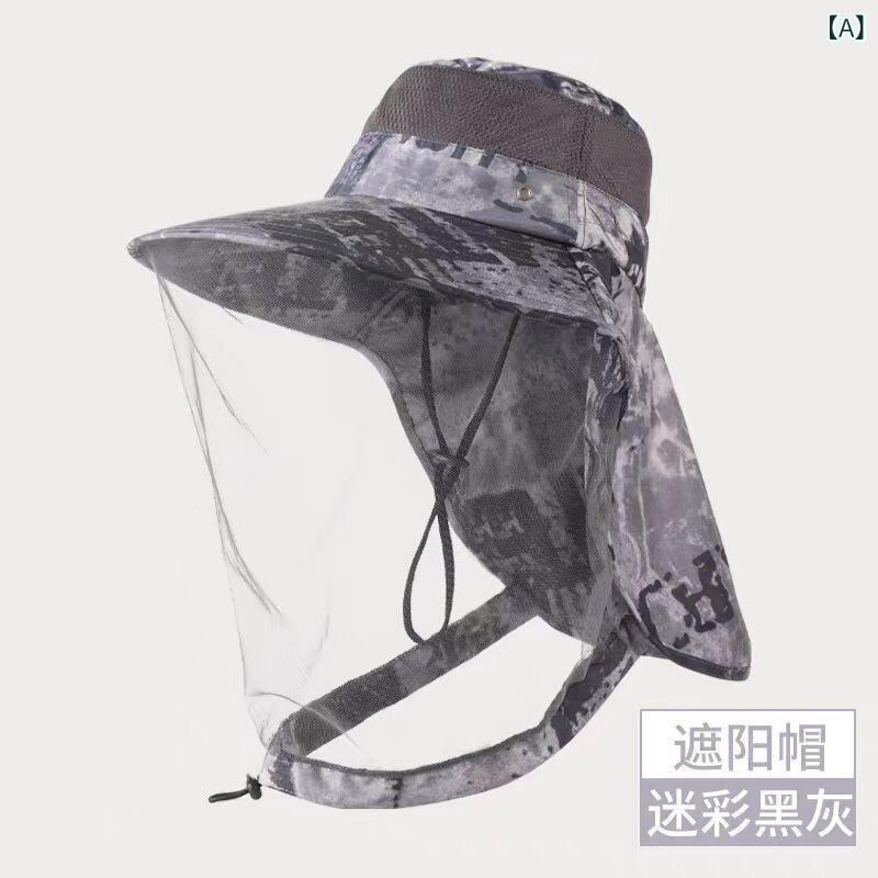 日よけ帽子 男女兼用 メッシュ フェイスカバー ネックガード 虫除け UVカット 紫外線対策 つば広 ポリエステル アウトドア 釣り キャンプ 登山 ウォーキング レジャー 夏 速乾 軽量