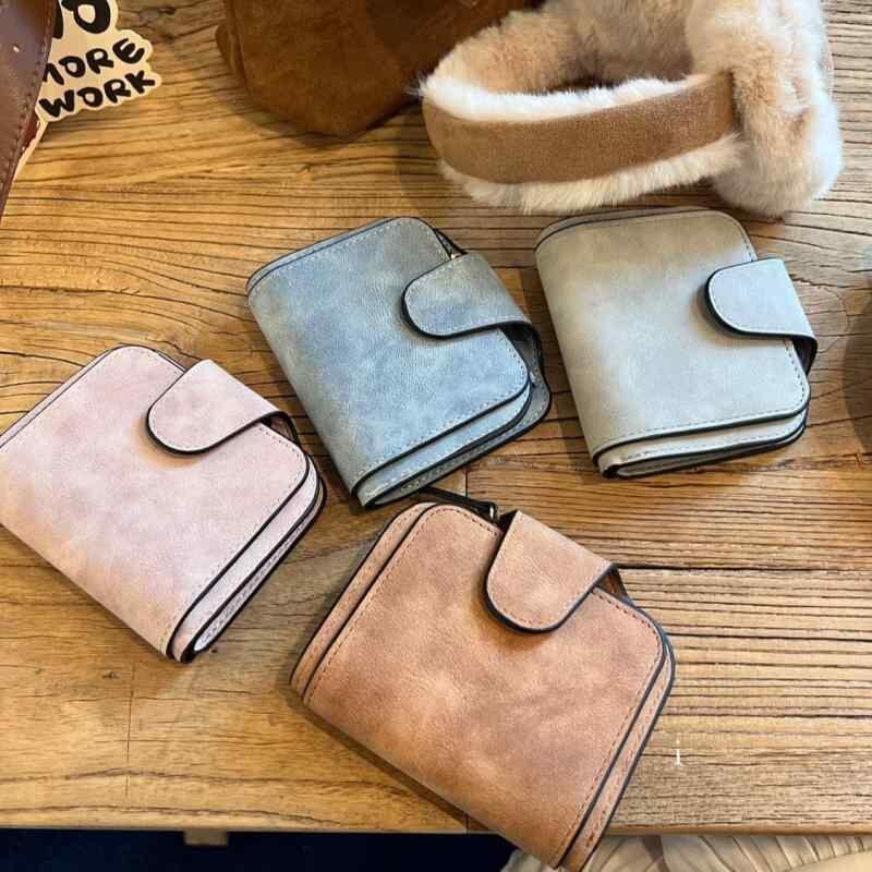 財布 レディース 韓国風 おしゃれ 三つ折り PUレザー ウォレット 軽量 多機能 カードポケット スキミング防止 マット加工 留め具付き グレー ブルー ピンク ブラウン 日常使い