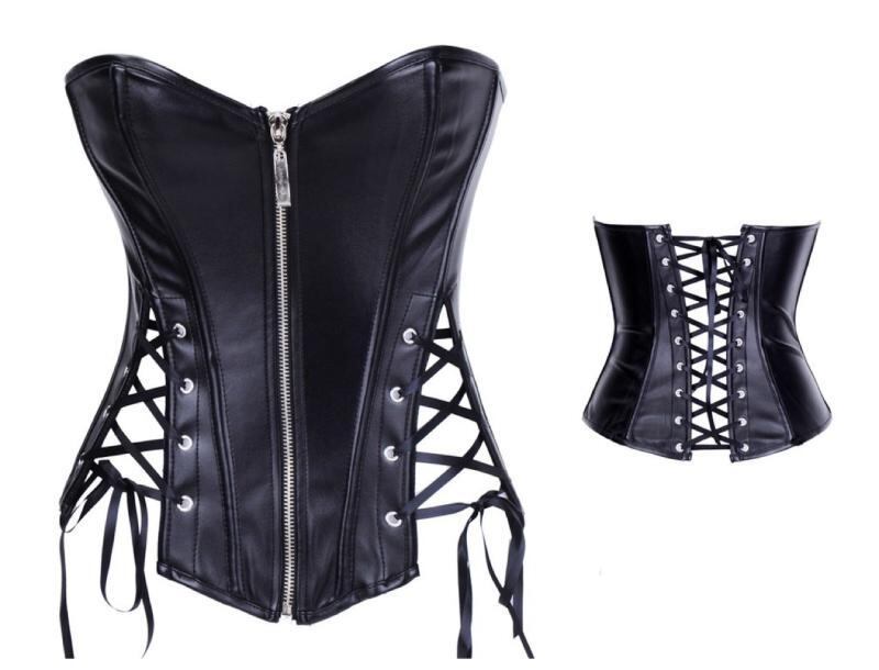 ビスチェ レディース PUレザー コルセット ストラップレス チューブトップ ベアトップ ウエストマーク ボディシェイパー ロック パンク スタイルアップ 細見え 黒