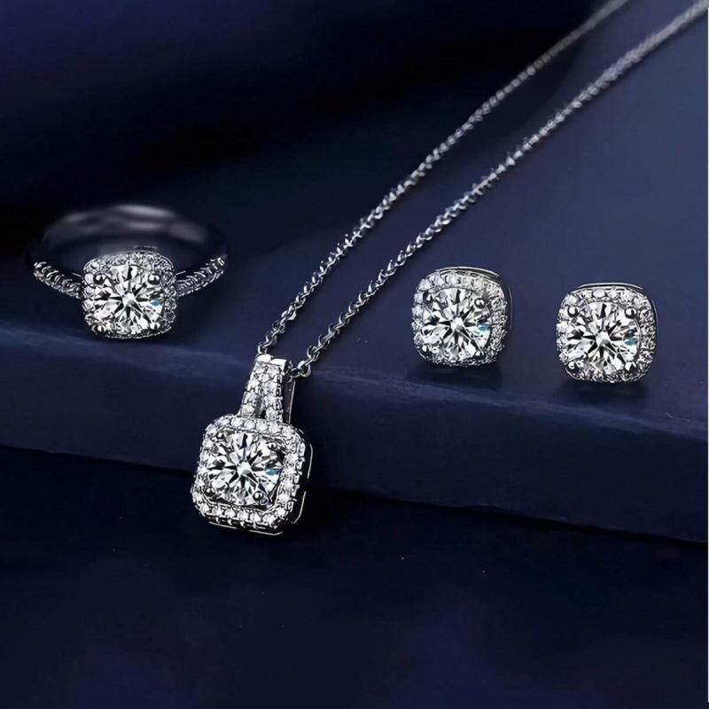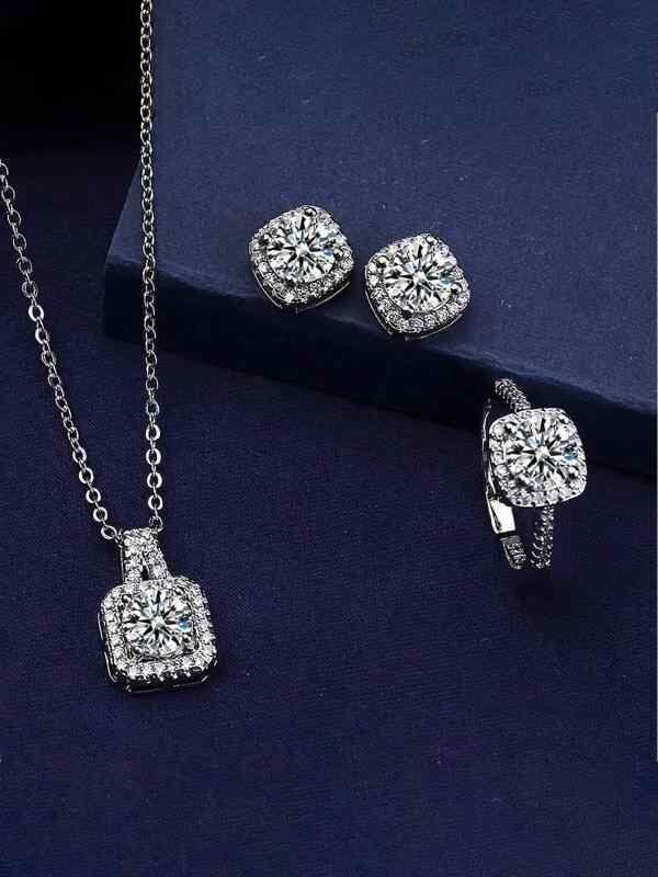 アクセサリーセット レディース 煌めく ジルコニア 人工クリスタル製 ネックレス ピアス 指輪 3点セット 上品 エレガント オフィス カジュアル 通勤 パーティー フォーマル デイリーユース 高見え