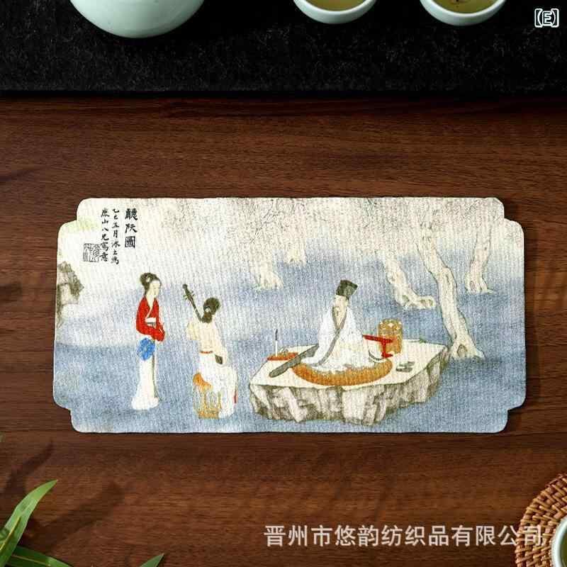 ["・素材: サンゴフリース","・重さ: 25g-40g","・糸種: 混紡糸","・加工方法: プリント","・カテゴリ: 茶巾","・吸水性: 21秒-25秒","・カラー: 喜上枝頭、千里江山、只此青緑、山中訪友、樹下聴阮、銀杏落葉、雲鶴逐月、桃枝濃粉大長条茶巾","・サイズ: 16×30cm、18×36cm"]