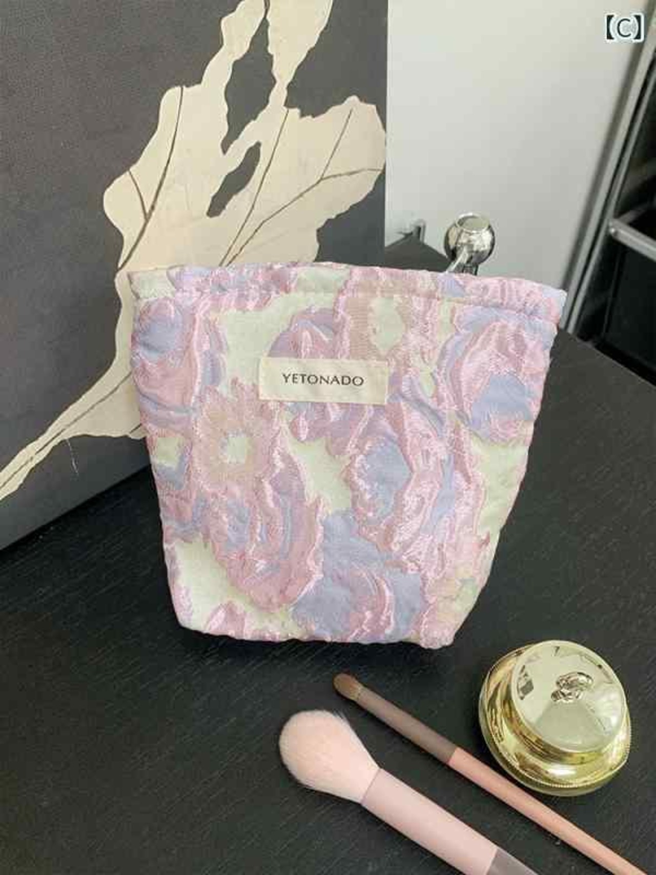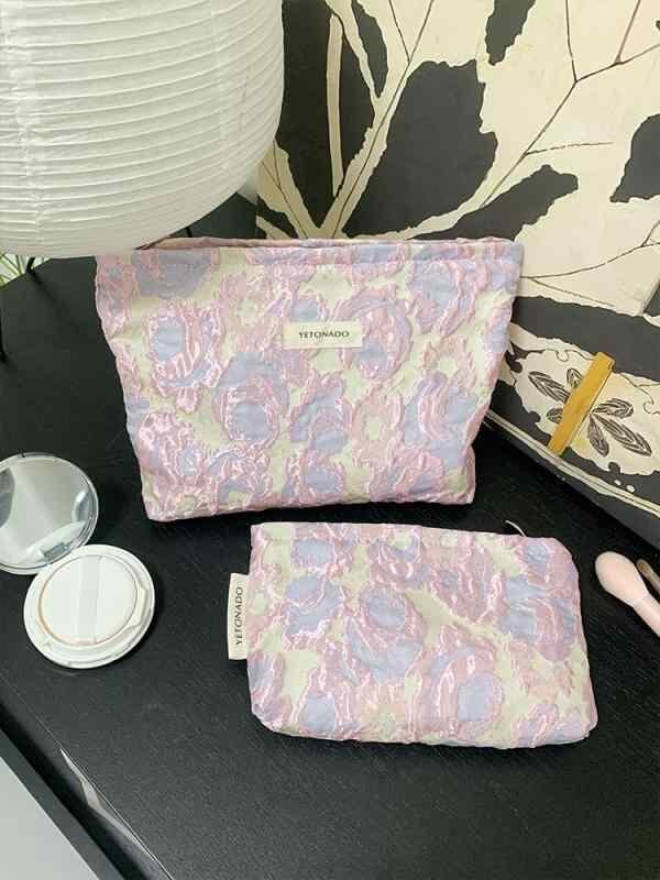 ポーチ レディース 上品 エレガント エンボス ジャカード キャンバス ミニバッグ クラッチ コスメ トラベル 小物入れ デイリー 旅行 収納 パープル