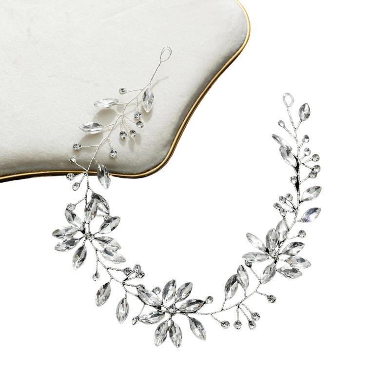 ヘッドドレス レディース ブライダル ウェディング 結婚式 花嫁 ハンドメイド 手作り ガラス クリスタル ラインストーン マーキス フラワーモチーフ シルバー ヘアアクセサリー カチューシャ