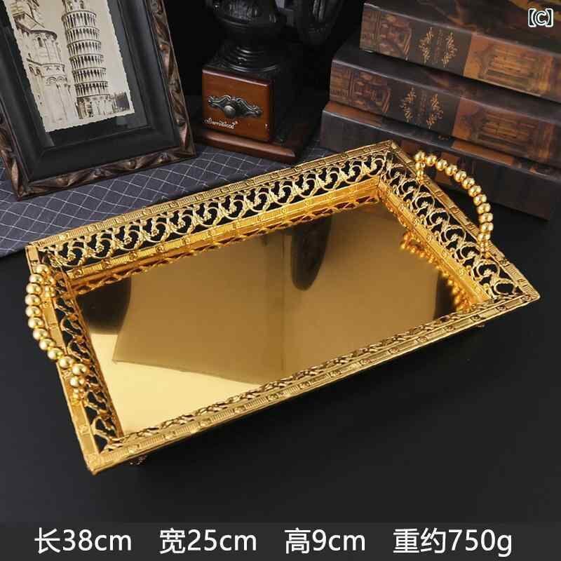 インテリアトレー 北欧風 おしゃれ モダン シンプル 多機能 フルーツプレート お菓子皿 ディスプレイ 家庭用 リビング コーヒーテーブル 結婚祝い ギフト 金属製 ゴールド シルバー オーナメント