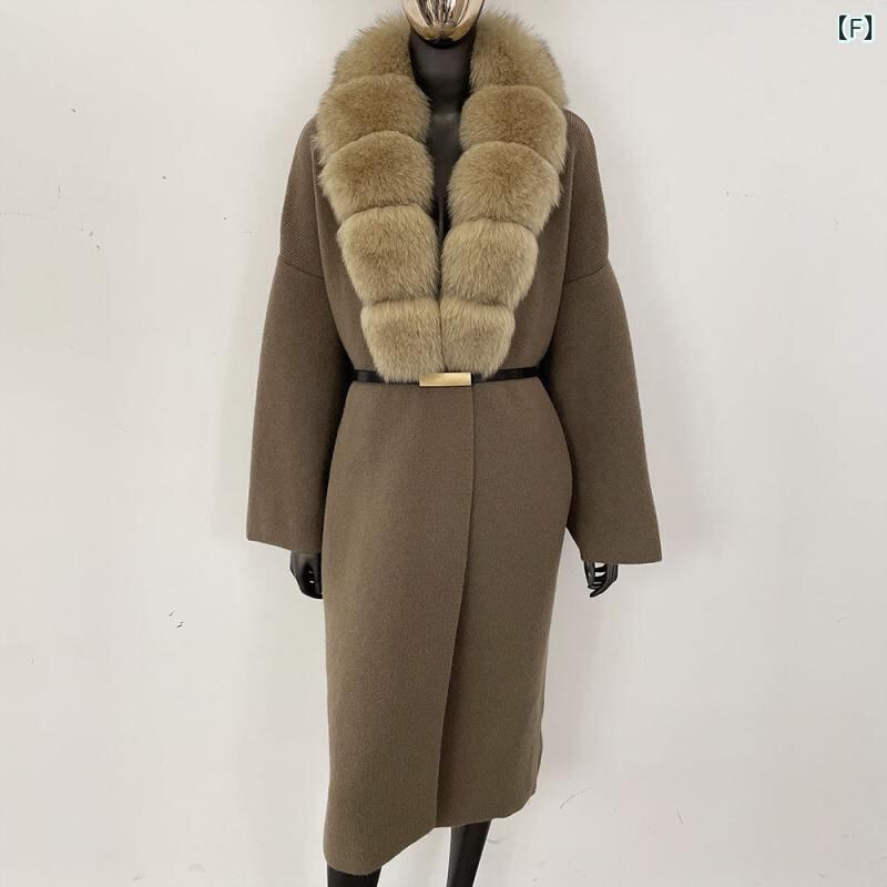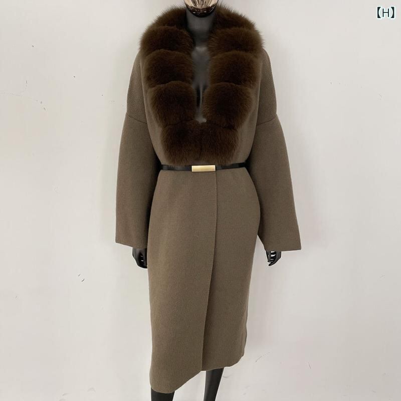ニットカーディガン レディース 春夏 ロング丈 厚手 フォックスファー襟 Vネック ゆったり リラックス 長袖 ポリエステル きれいめ カジュアル 通勤 上品