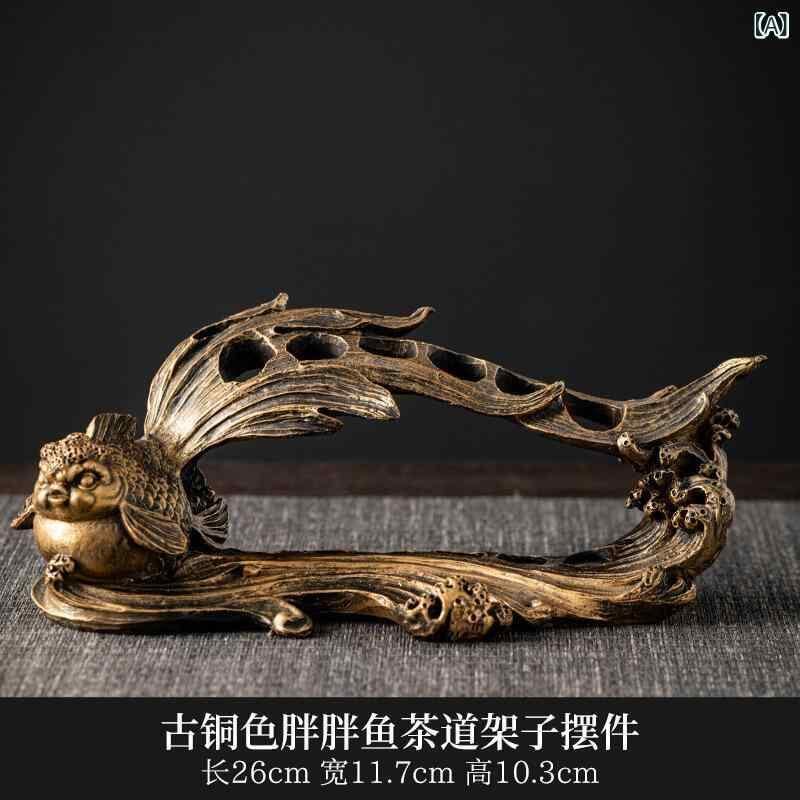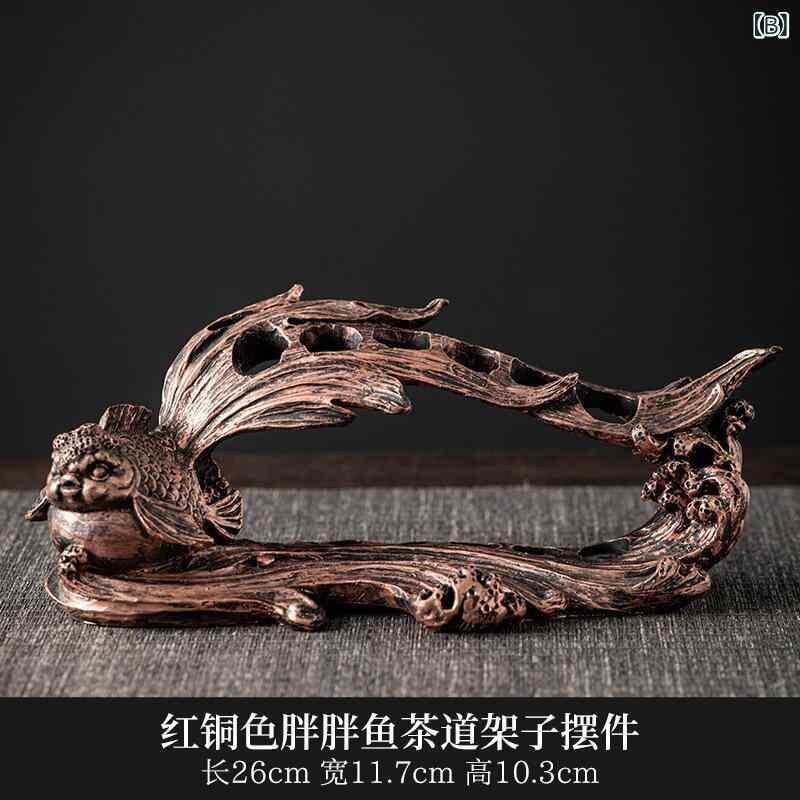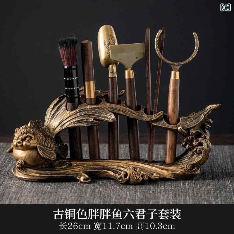 茶器 茶道六君子セット 家庭用 オフィス スマホスタンド 携帯電話スタンド 卓上飾り 茶挟み 樹脂製 中国風 魚モチーフ 置物 オブジェ インテリア アンティークブロンズ レッドブロンズ
