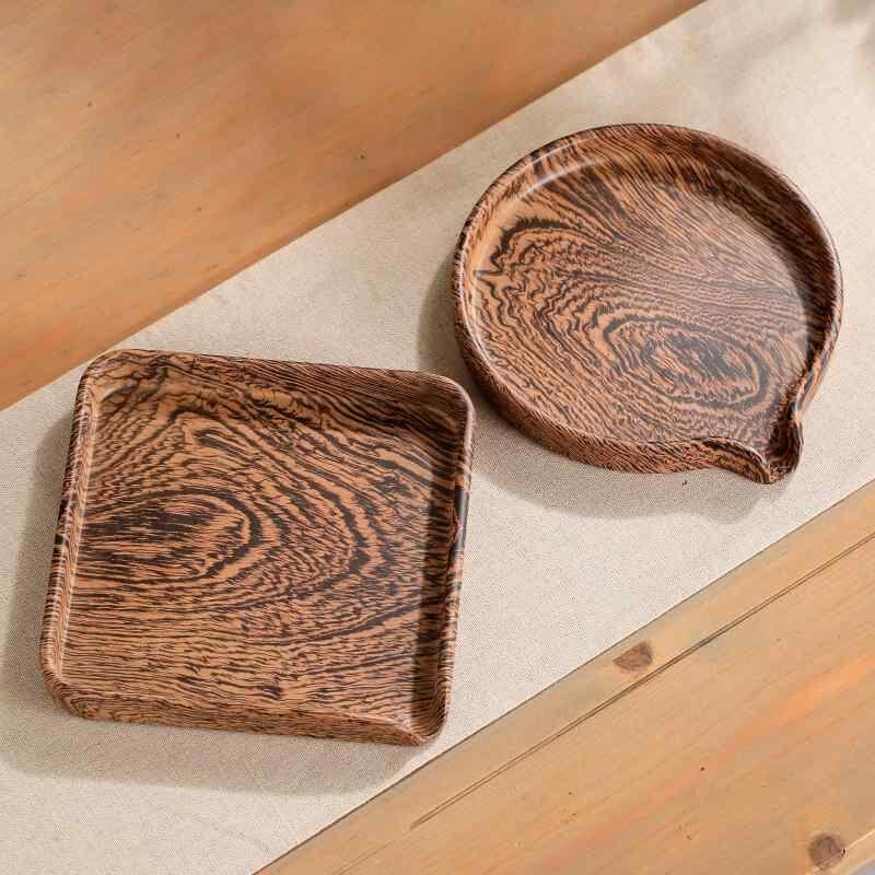 茶盤 メラミン製 花梨木色 胡桃木色 鶏翅木色 プーアル茶 餅鑑賞 家庭用 自宅用 シンプル おしゃれ 中式 茶器 四角 丸型 トレー