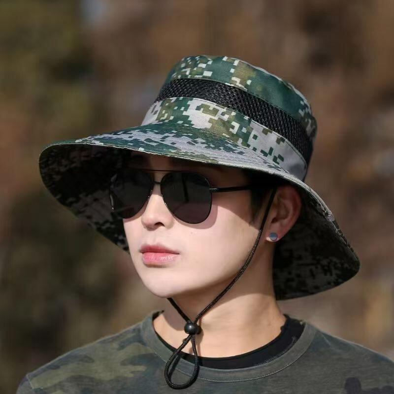 ハット メンズ 男性用 春夏 迷彩 UVカット 日よけ アウトドア レジャー 登山 釣り スポーツ 綿ポリエステル 通気性 バケットハット サファリハット つば広 グレー カーキ