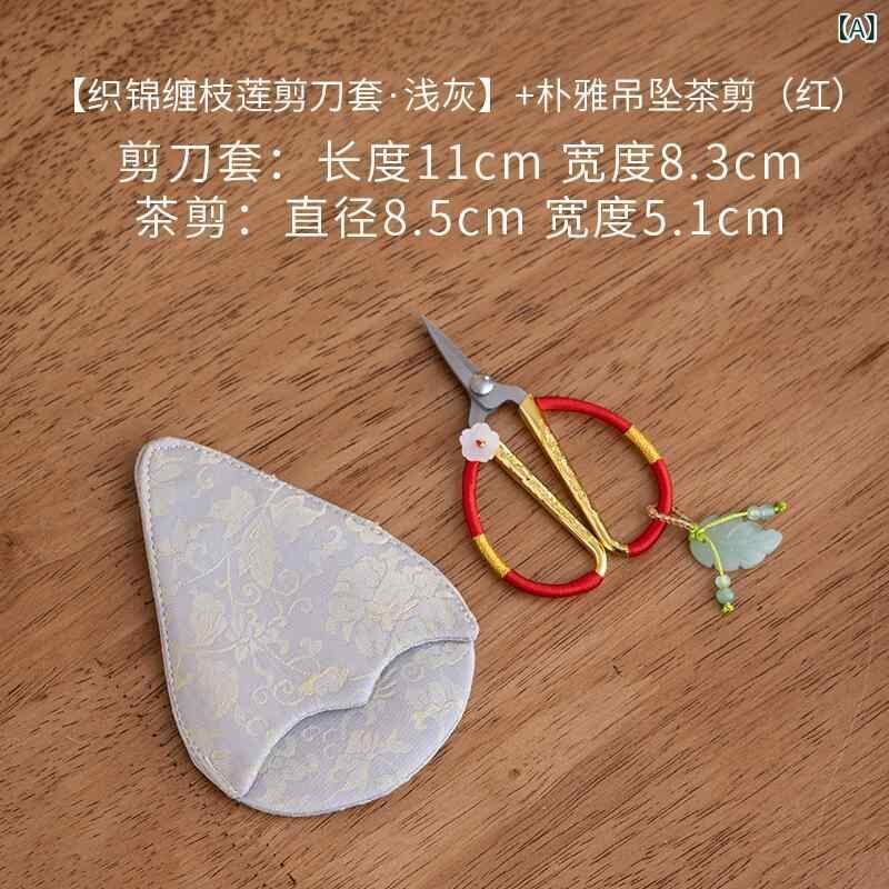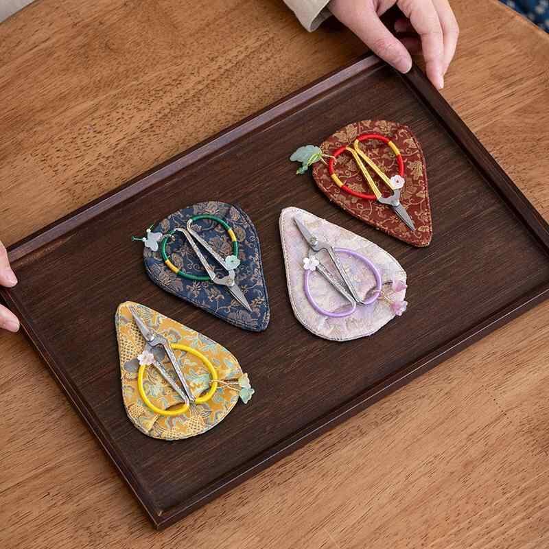 小型ハサミ ティーバッグ用 茶葉 茶道 錦織り 手作り 布製 モダン 新中式 和柄 花柄 コンパクト おしゃれ 雅やか 上品 美しい 茶道具
