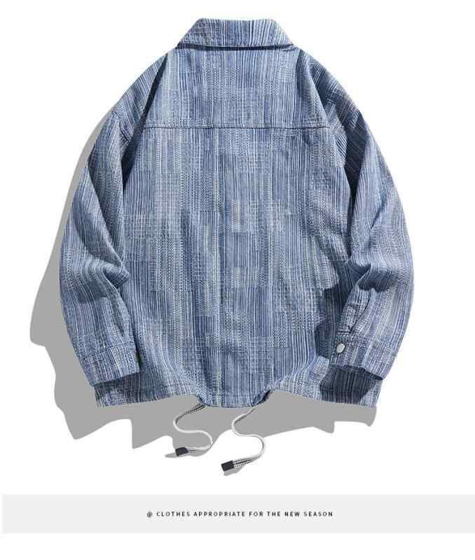 Gジャン メンズ 春夏 薄手 軽量 ビッグシルエット オーバーサイズ 長袖 襟付き アメリカンカジュアル グレー ブルー