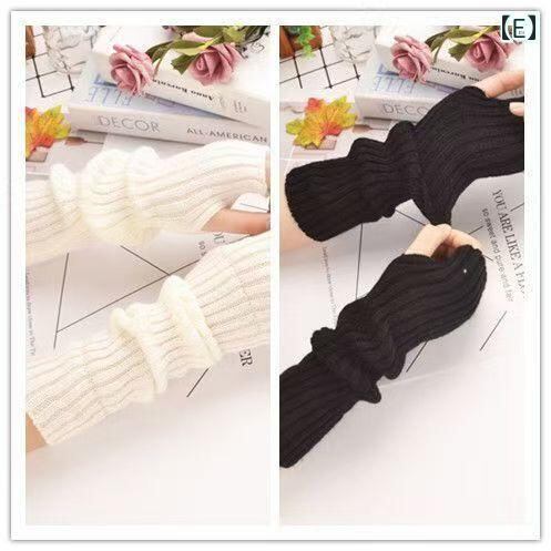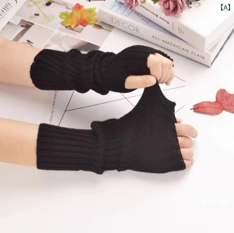 アームカバー レディース 日系 原宿系 忍者風 ダーク系 ストリート系 JK 指なし手袋 フィンガーレスグローブ ニット素材 無地 UV対策 防寒対策