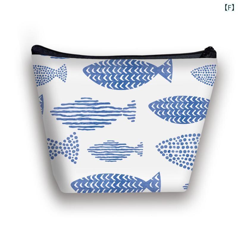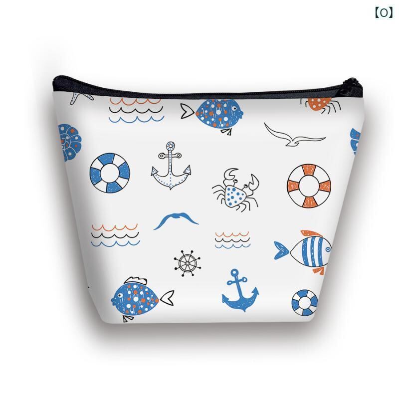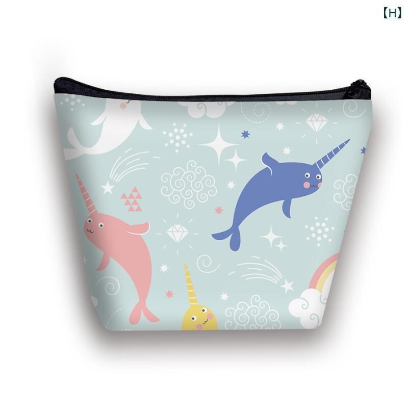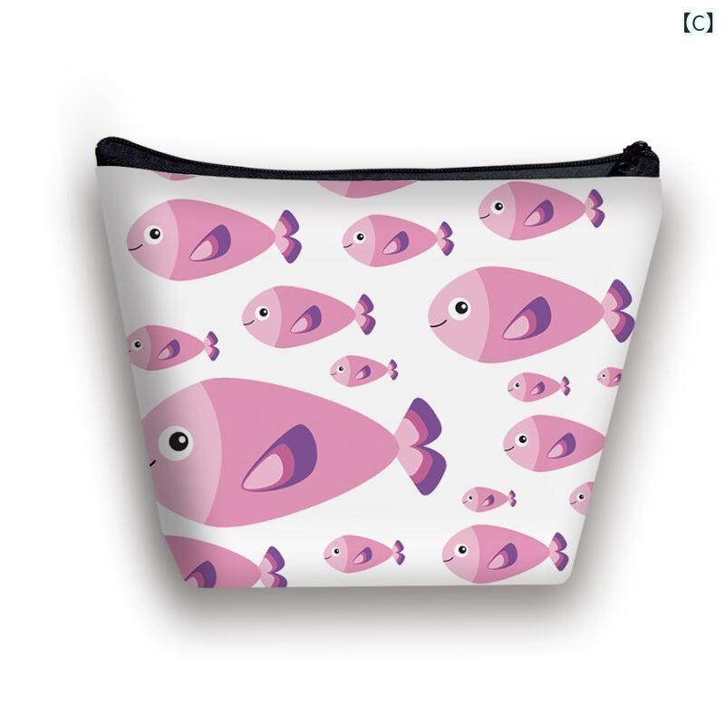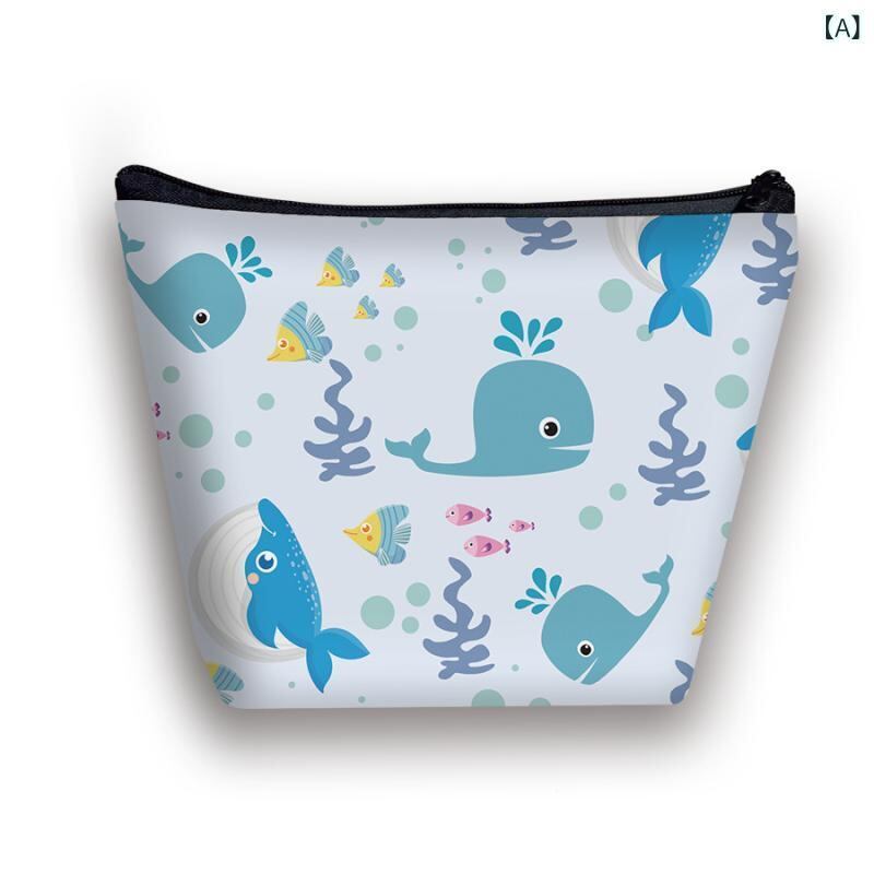 化粧ポーチ キッズ 女の子 マリンアニマル柄 アニメ風 プリント トラベル 収納 洗面用具 コスメ シンプル かわいい ポリエステル 通気性 抗菌 普段使い
