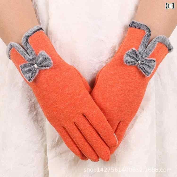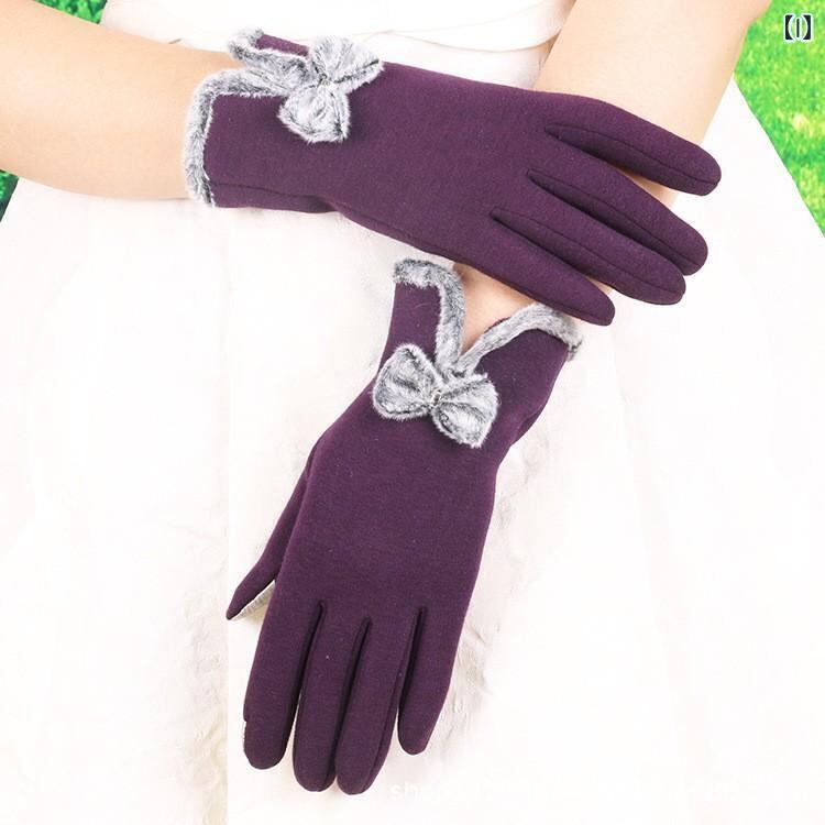 手袋 レディース 女性用 秋冬 フェイクファー縁 裏起毛 厚手 防寒 保温 アウトドア サイクリング スマホ対応 タッチパネル対応 5本指グローブ あったか もこもこ 通勤 通学 普段使い ポリエステル素材