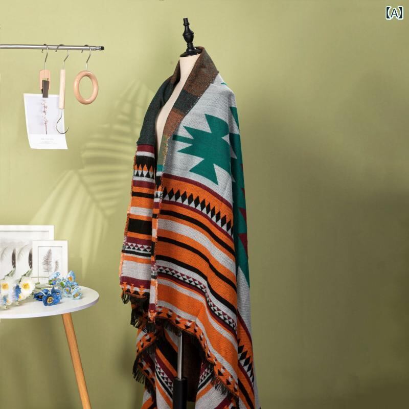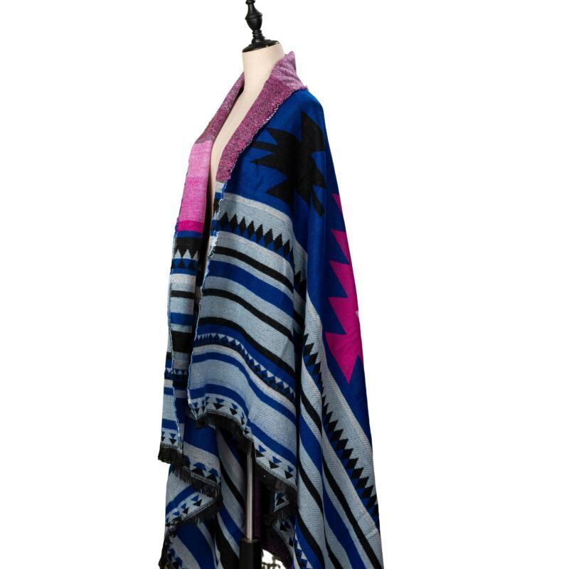 ショール レディース クラシック 幾何学模様 フリンジ 大判 ストール マフラー 羽織り 2WAY 冷房対策 日焼け対策 万能 着回し ポリエステル アクリル オレンジ系 ディープブルー ブルーイエロー