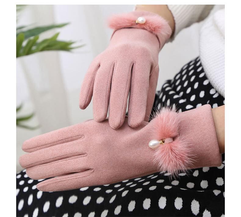 手袋 レディース 女性用 徳絨 裏起毛 保温 あったか 防寒 柔らか 快適 かわいい ポンポン付き 5本指 グローブ 普段使い お出かけ 通勤 ブラック ネイビー グレー ピンク カーキ 秋冬