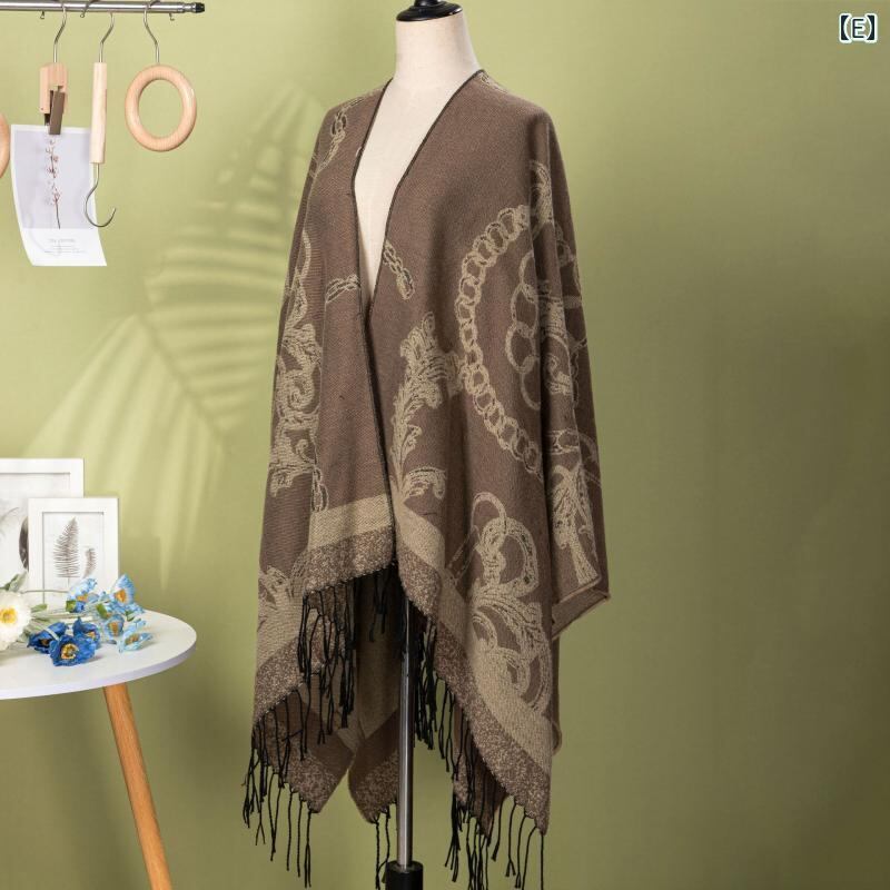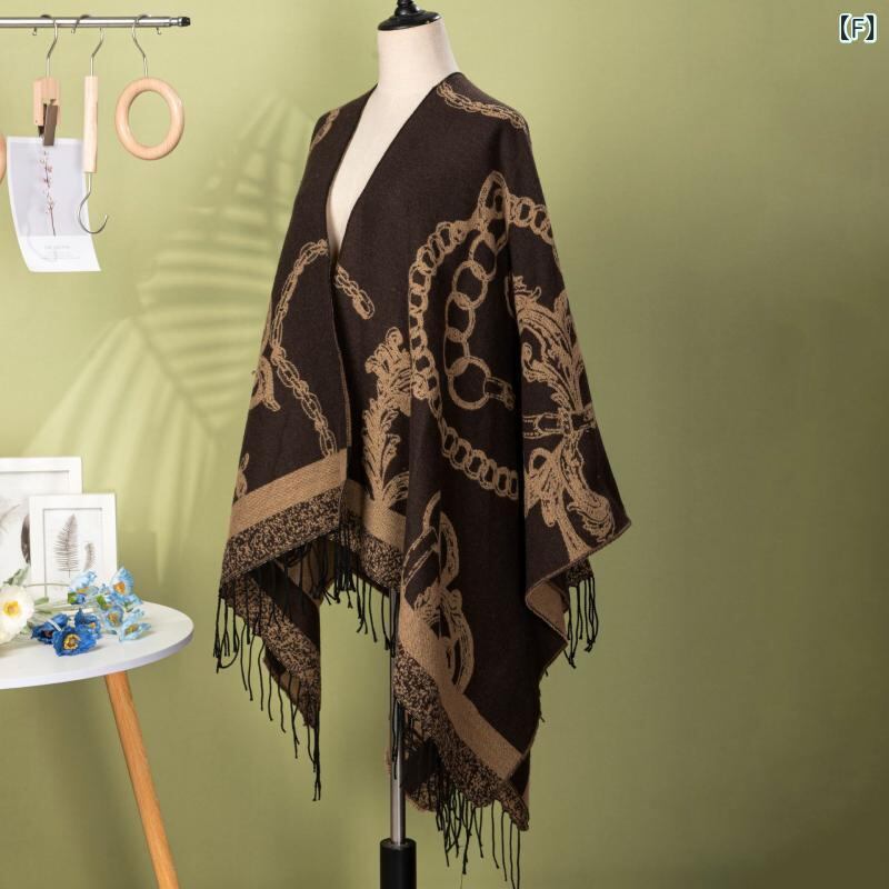 ショール レディース レトロ アサガオ 花柄 フリンジ デザイン カーディガン 羽織り 大判 ゆったり 着回し 万能 ポリエステル アクリル混紡 冷房対策 防寒対策