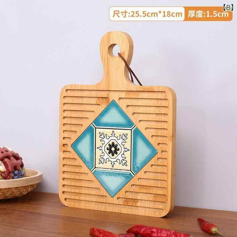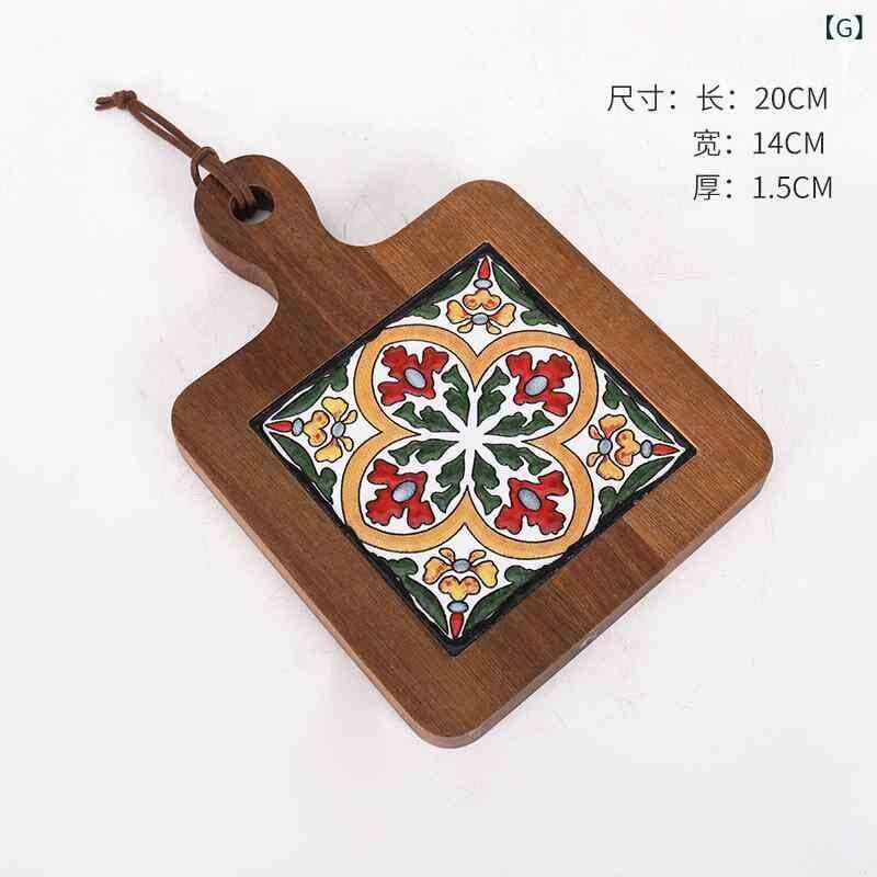鍋敷き 無垢材 レトロ タイル柄 取っ手付き 木製 やけど防止 家庭用 おしゃれな ポットマット コースター 土鍋 スープ鍋 熱対策 テーブル保護 北欧風 変形デザイン キッチン雑貨