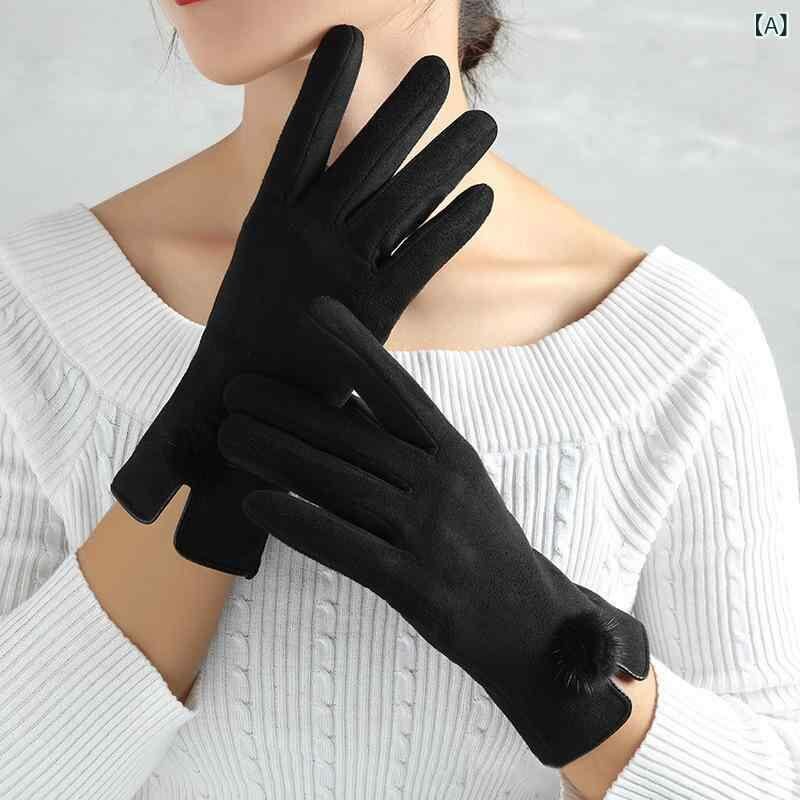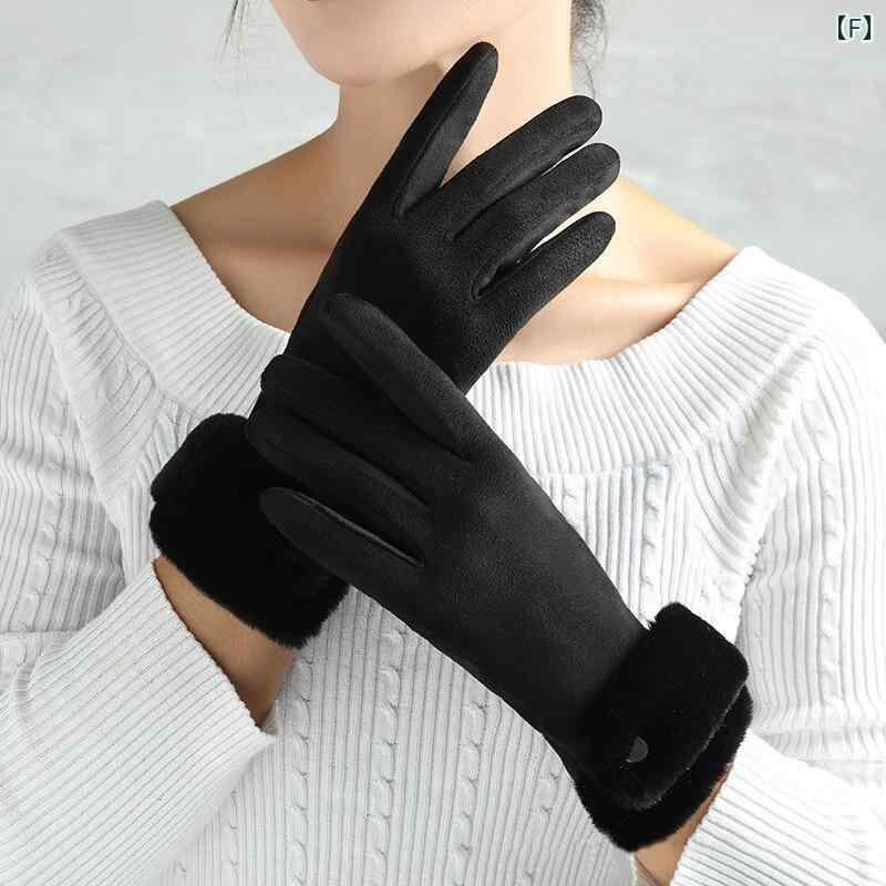 手袋 レディース 女性用 フェイクスエード 裏起毛 厚手 防寒 保温 防風 タッチパネル対応 スマホ対応 冬用 グローブ サイクリング 運転 ドライブ 通勤 通学 カジュアル シンプル あったか