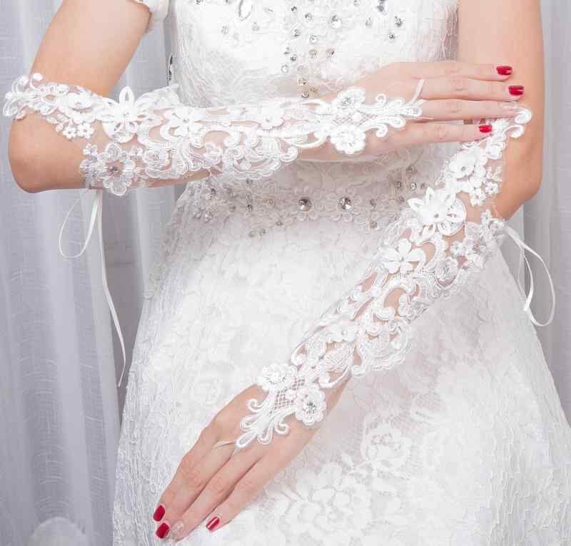 手袋 レディース ウェディンググローブ 結婚式 ブライダル 花嫁 ロング丈 レース ラインストーン フィンガーレス 指なし オフホワイト エレガント パーティー 披露宴 二次会 演奏会 発表会
