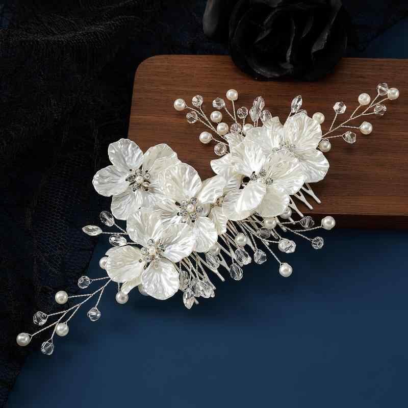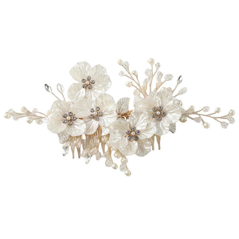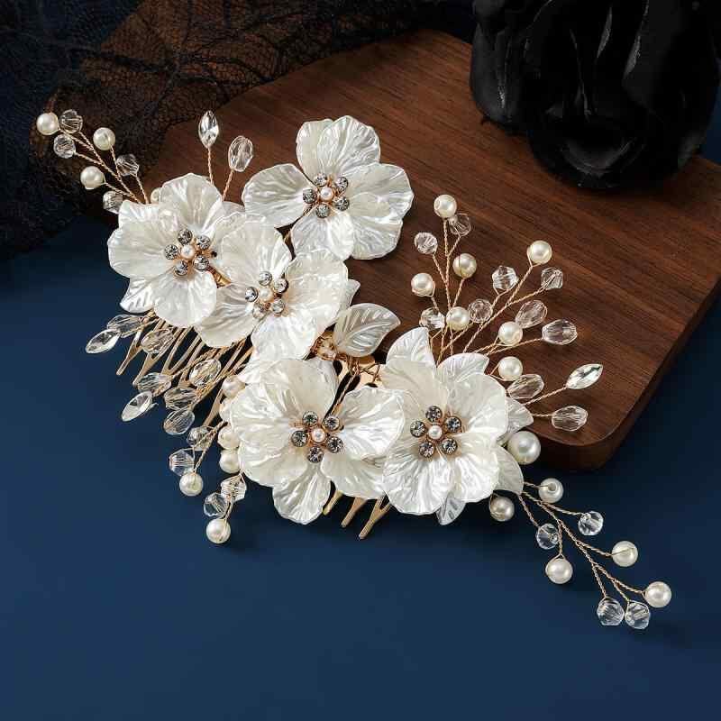 ヘッドドレス レディース 韓国風 花嫁 結婚式 ブライダル ウェディング パール パール クリスタル 水晶 白 貝殻 シェル 花びら フラワー リーフ 手作り ハンドメイド 上品 コーム