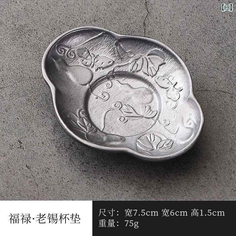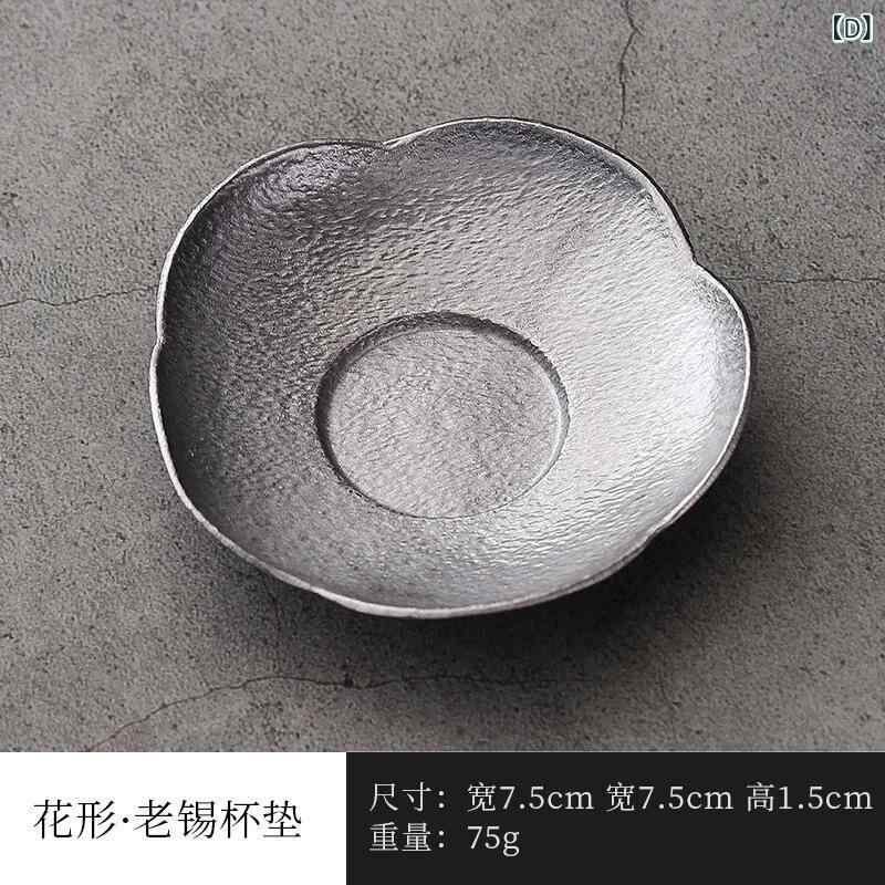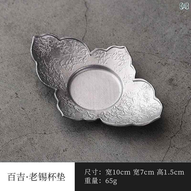 コースター 純錫製 茶托 茶碗置き カップトレー レトロ アンティーク ビンテージ加工 和風 滑り止め 断熱 耐熱 茶道 茶道具 アクセサリー 高級感 金属製 おしゃれ 来客 普段使い インテリア雑貨