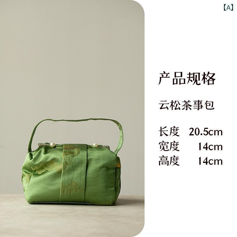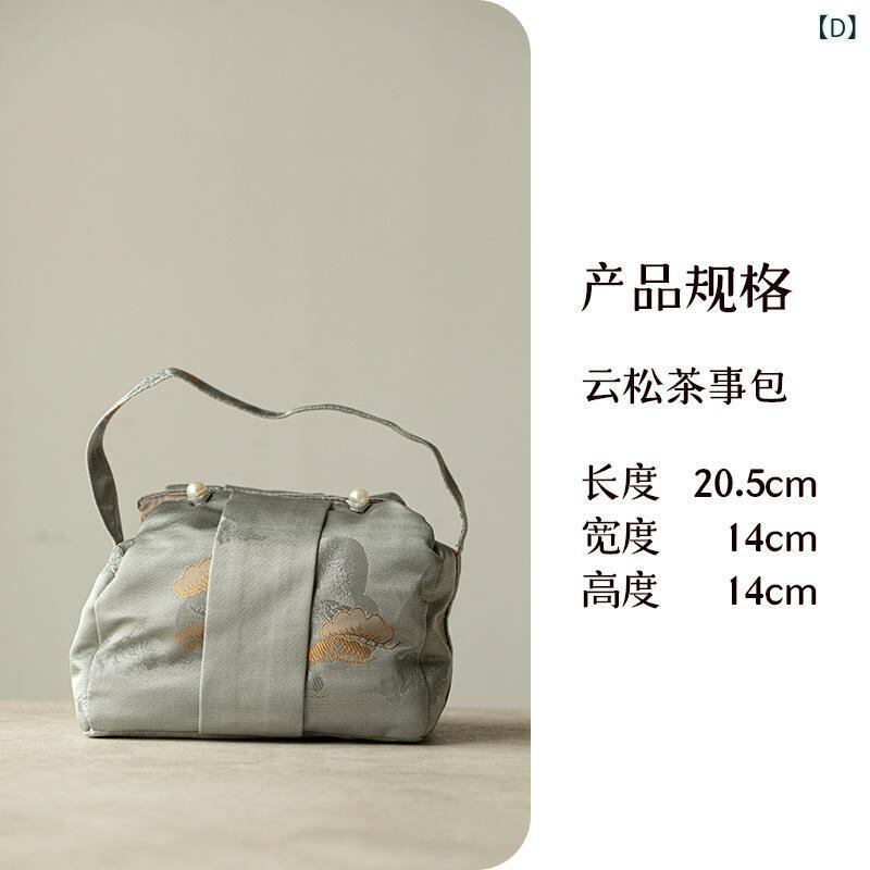 茶器収納バッグ アウトドア レジャー 旅行用 ポータブル 携帯用 軽量 家庭用 ティーセット 蓋碗セット 急須 湯呑2客用 茶道具 布製 収納ポーチ グリーン ピンク イエロー シルバーグレー レッド