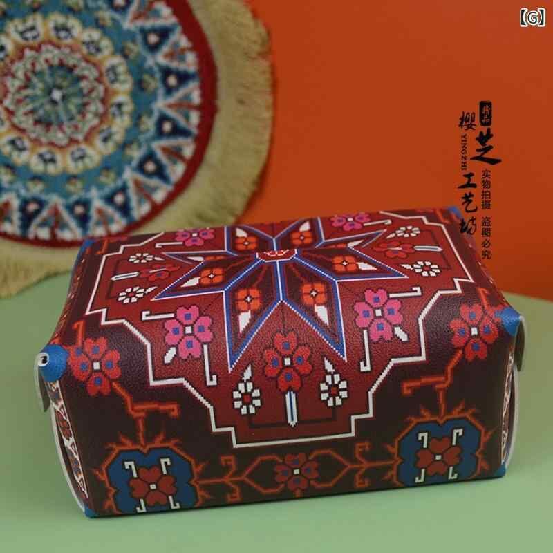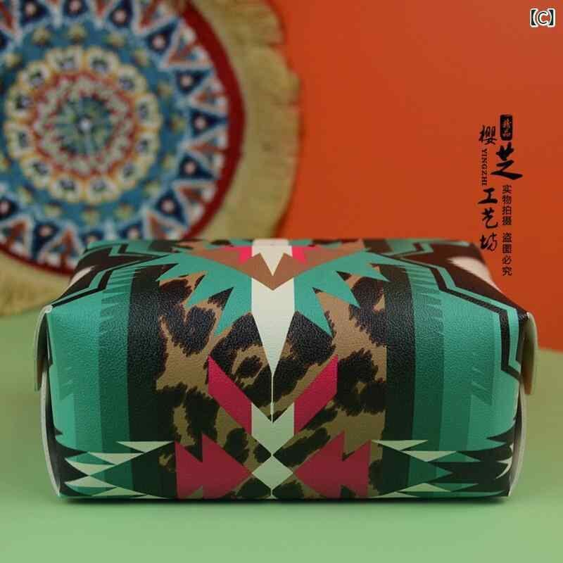 ティッシュケース レザー 革製 車載用 家庭用 卓上 キッチン 洗面所 リビング ボヘミアン エスニック チベット文様 手描きデザイン ハンドペイント 防水 高級感 インテリア雑貨