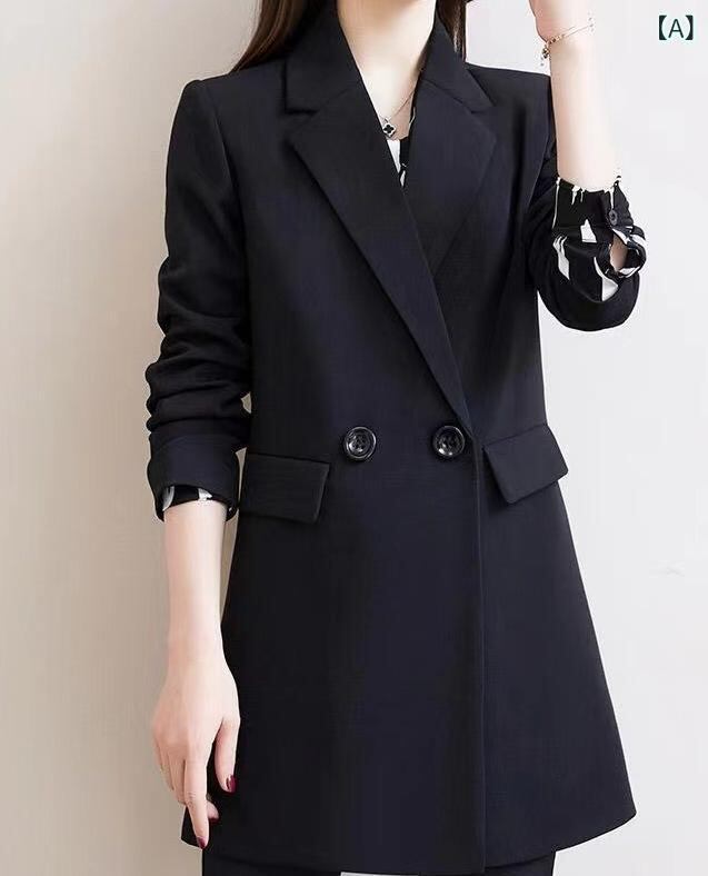 テーラードジャケット レディース ゆったり カジュアル ブラック 黒 きれいめ 韓国風 オーバーサイズ 長袖 ミドル丈 テーラードカラー ポリエステル 春秋 アウター