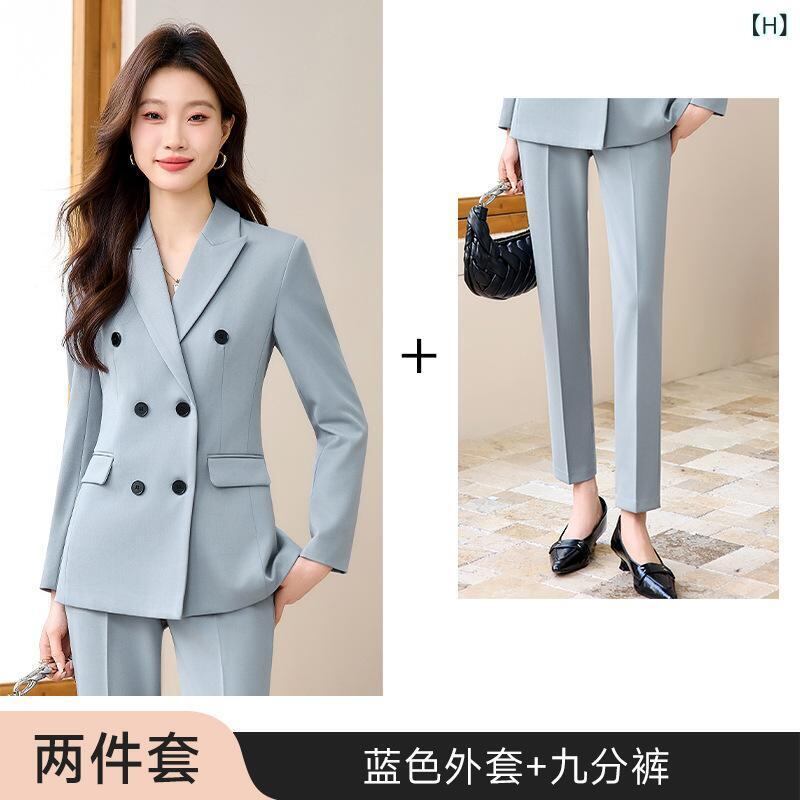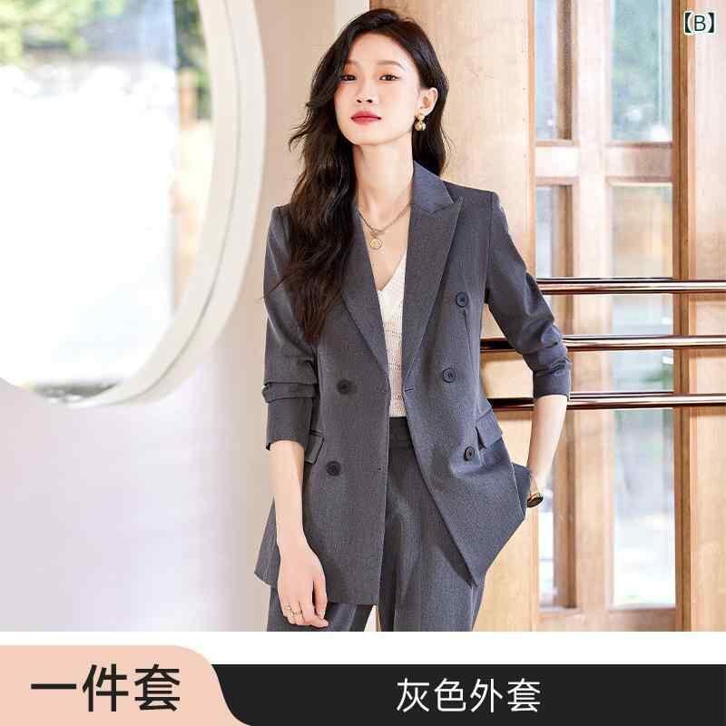 スーツジャケット レディース 女性用 グレー ダブルブレスト 長袖 春夏 オフィス ビジネス 通勤 フォーマル セットアップ 上品 きれいめ エレガント 高見え ポリエステル