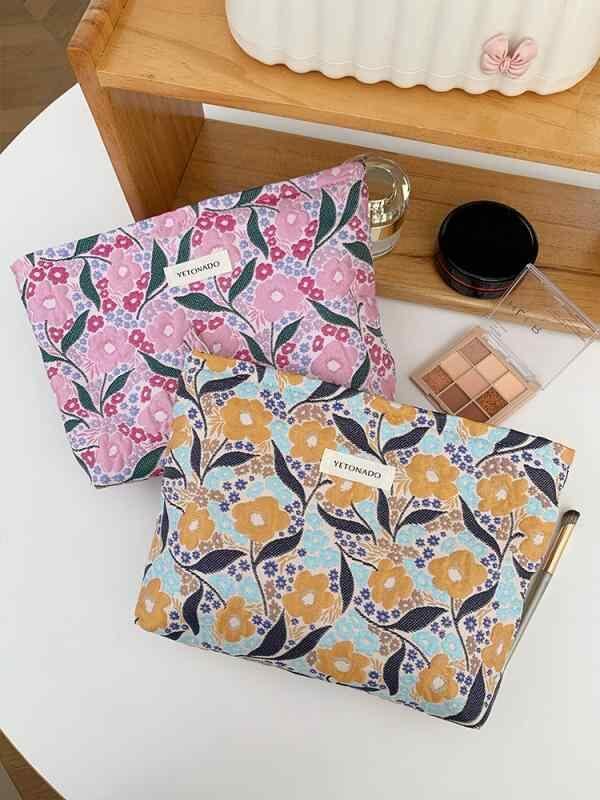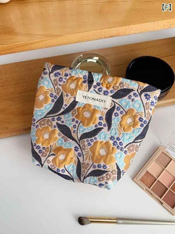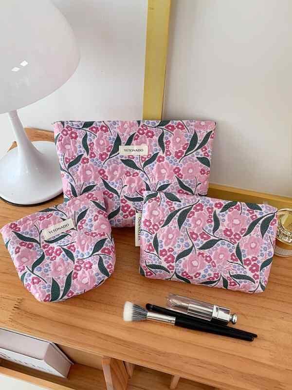 ポーチ レディース レトロ フレンチスタイル ピンク花柄 エンボス ジャカード 大容量 携帯用 トラベル コスメ メイク スクール ペンケース 収納 ポリエステル 普段使い