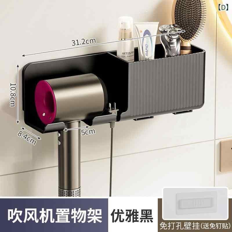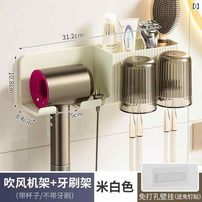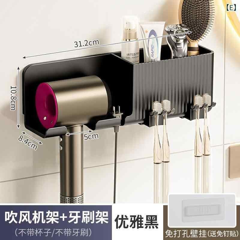ドライヤーホルダー ヘアドライヤー 歯ブラシ収納ラック 吸盤式 穴あけ不要 壁掛け 多機能 洗面所 浴室 バスルーム 一体型 ABS製 省スペース 整理整頓