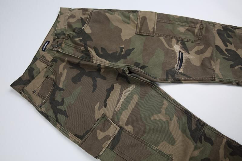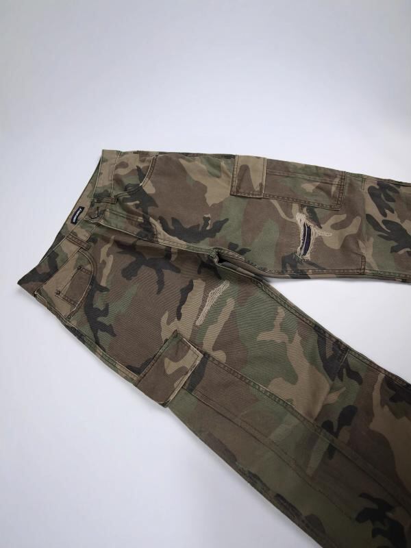 デニムパンツ メンズ 春物 迷彩柄 カモフラージュ ダメージ加工 ユーズド加工 ウォッシュ加工 ゆったり ルーズ ワイドシルエット ビッグシルエット コットン 綿 普段使い カジュアルスタイル ベーシック レトロ ジーンズ ロング丈