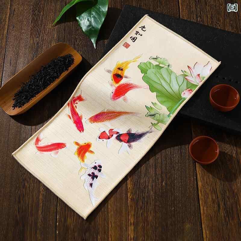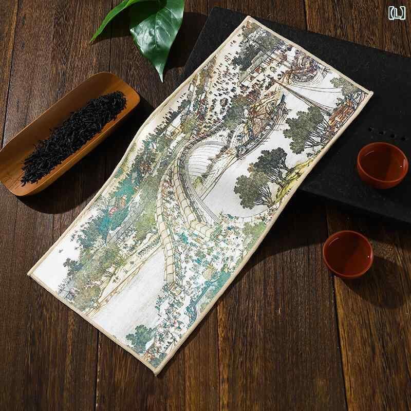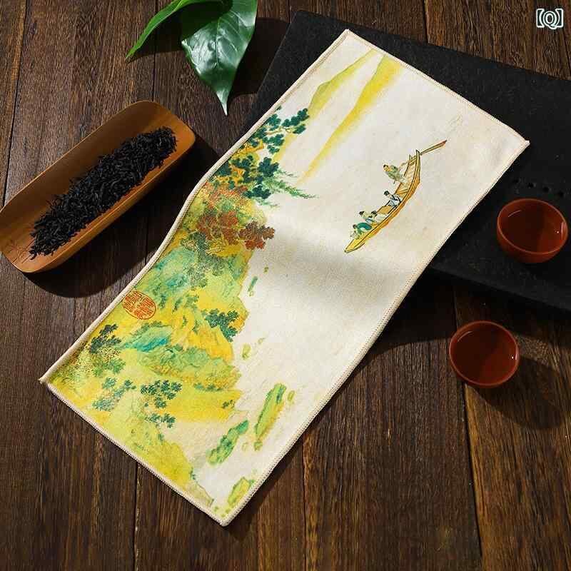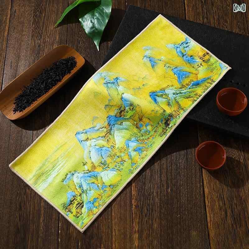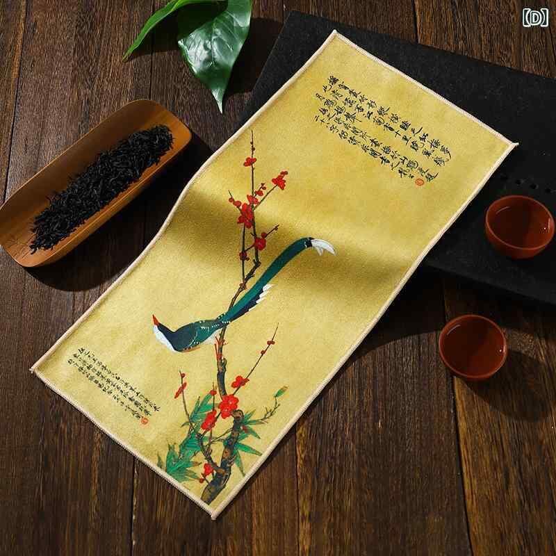 茶巾 モダンチャイニーズ レトロ クラシック スエード調 マイクロファイバー 厚手 プリント柄 吸水性 毛羽立ちにくい ティータオル ティーマット