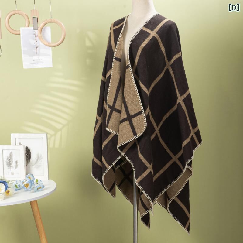 ショール レディース 秋冬 保温 防寒 厚手 チェック柄 ライン模様 シンプル エレガント レトロ エスニック ポンチョ カーディガン 羽織り 大判 ゆったり 体型カバー 旅行 お出かけ 普段使い カジュアル