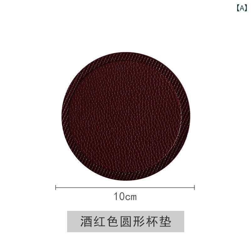 ランチョンマット コースター 鍋敷き 断熱パッド PUレザー 合成皮革 フェイクレザー 耐熱 円形 丸型 無地 ダイニング キッチン 北欧風 インスタ風 おしゃれ シンプル ワインレッド カーキ グリーン ネイビー ベージュ グレー