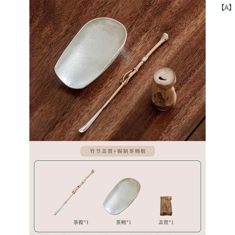 茶道具 錫製茶則 茶葉受け 茶葉トレイ 竹製茶撥 茶針 茶通し 3点セット 家庭用 普段使い 来客用 おもてなし 茶器 茶道セット 新中式デザイン 錫色
