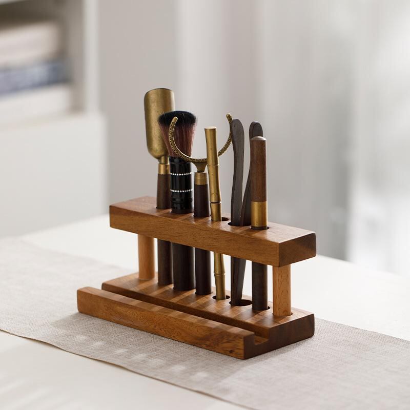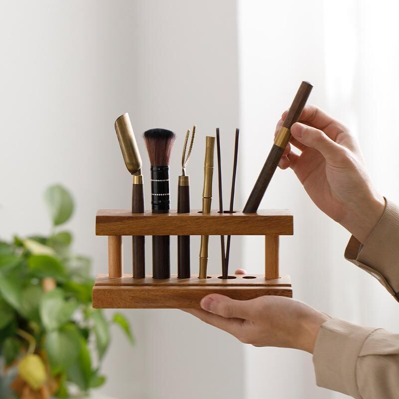 茶道具 六君子 ウォールナット 高級感 茶筆 茶挟 スタンド ホルダー 台座 和モダン モダンオリエンタル 茶道用 お茶席 普段使い インテリア ディスプレイ 卓上 コンパクト 省スペース