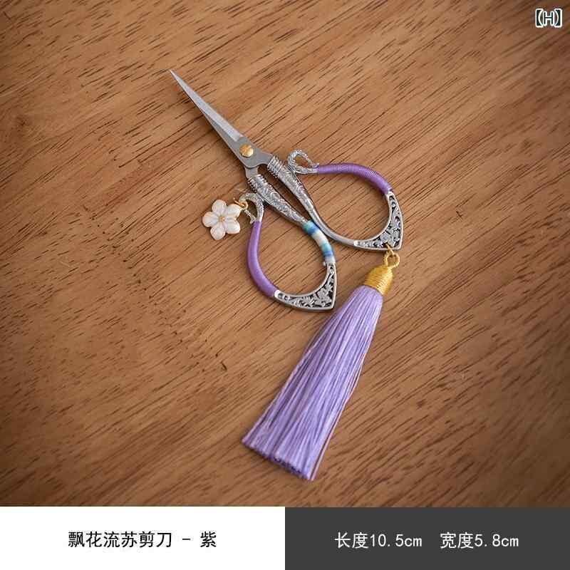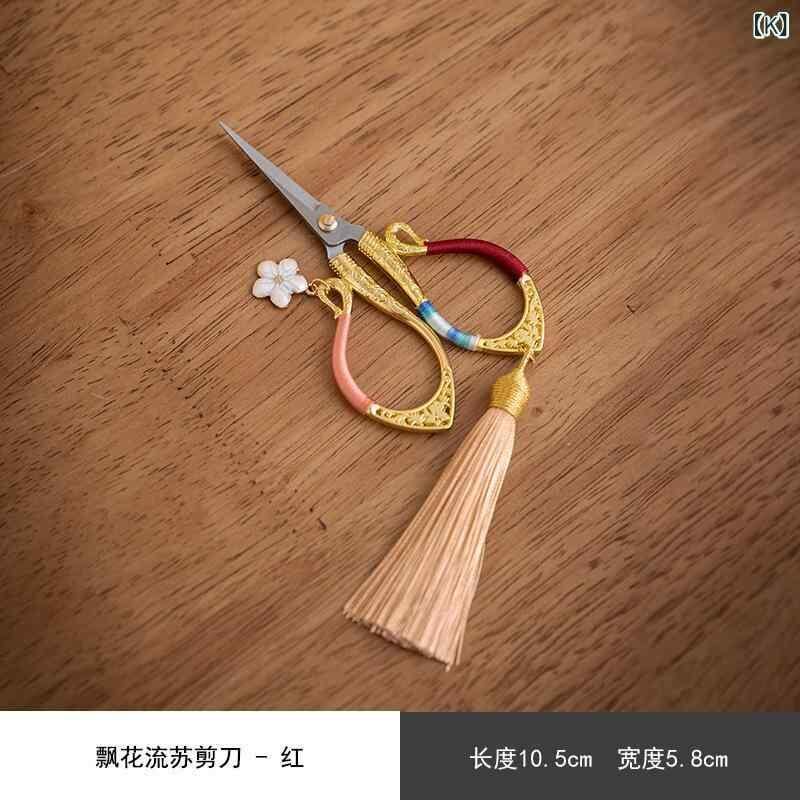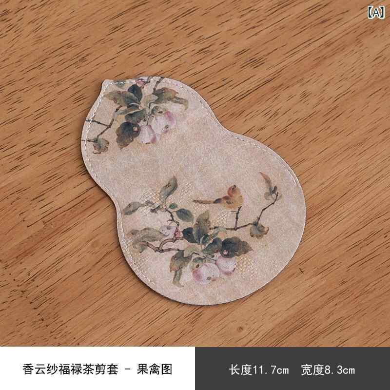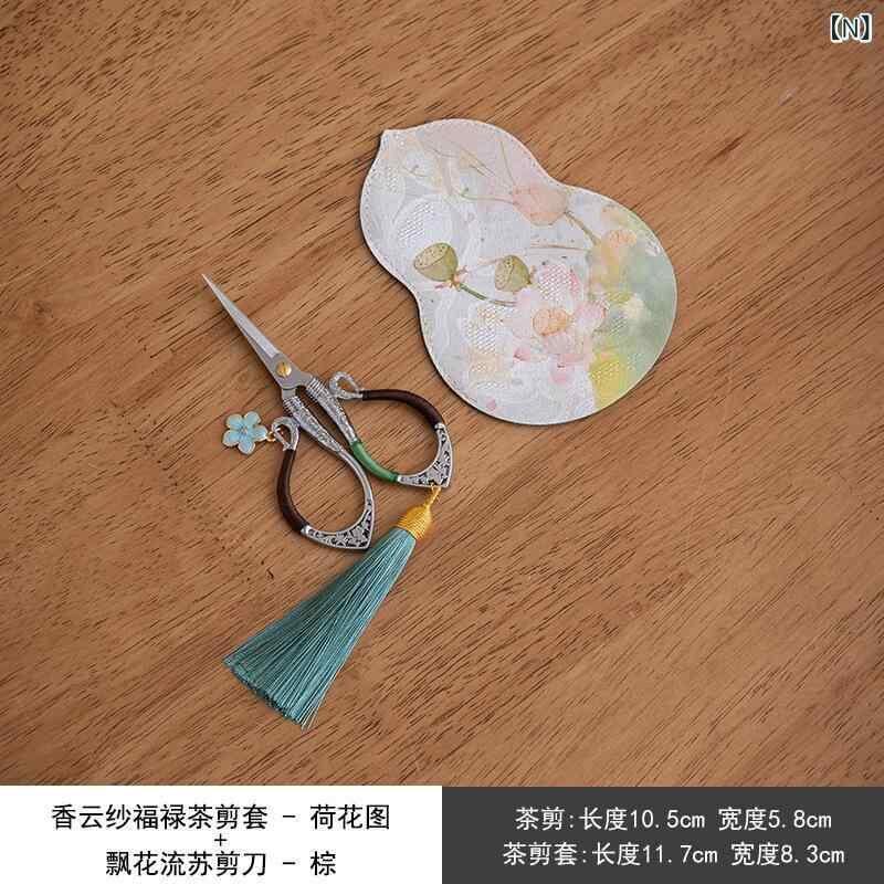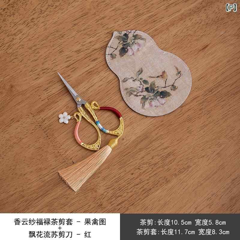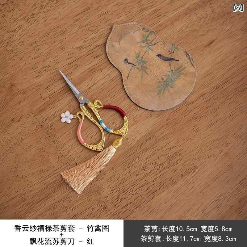 茶道ハサミ 中華風 新中式 タッセル飾り 布製 花鳥柄 小型ミニシザー ティーバッグ用 茶葉カット 保護ケース 携帯用 茶具アクセサリー