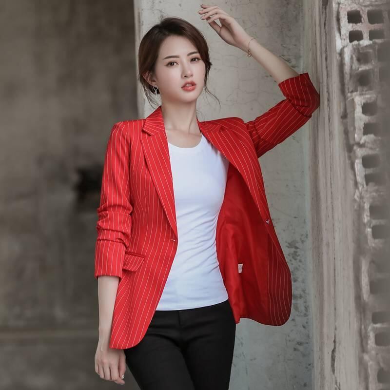 テーラードジャケット レディース 春夏 韓国風 きれいめカジュアル 通勤 オフィス スクール 長袖 ストライプ柄 ポリエステル 一粒ボタン 着回し おしゃれ