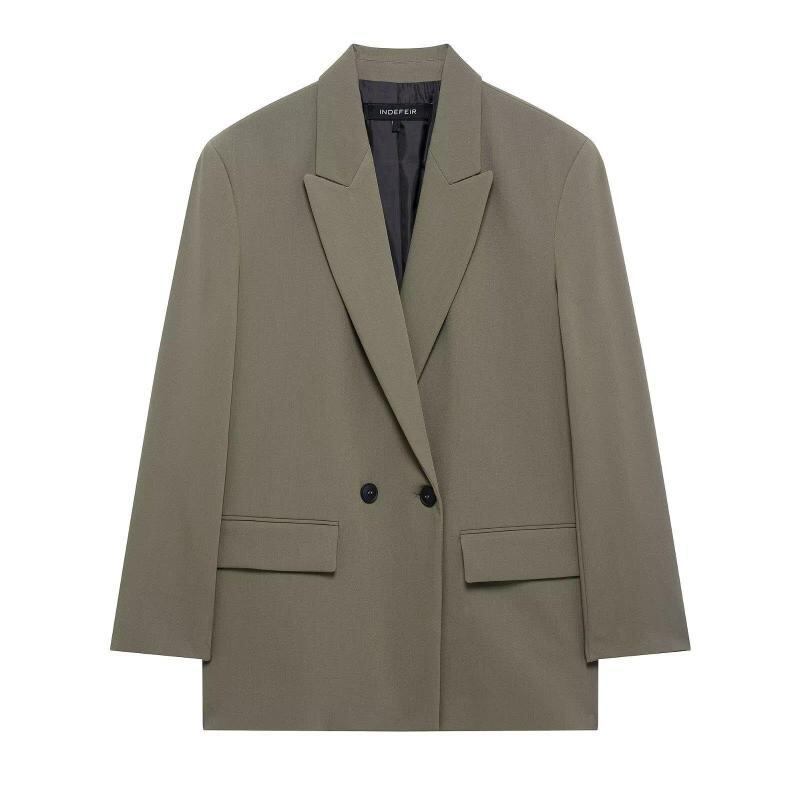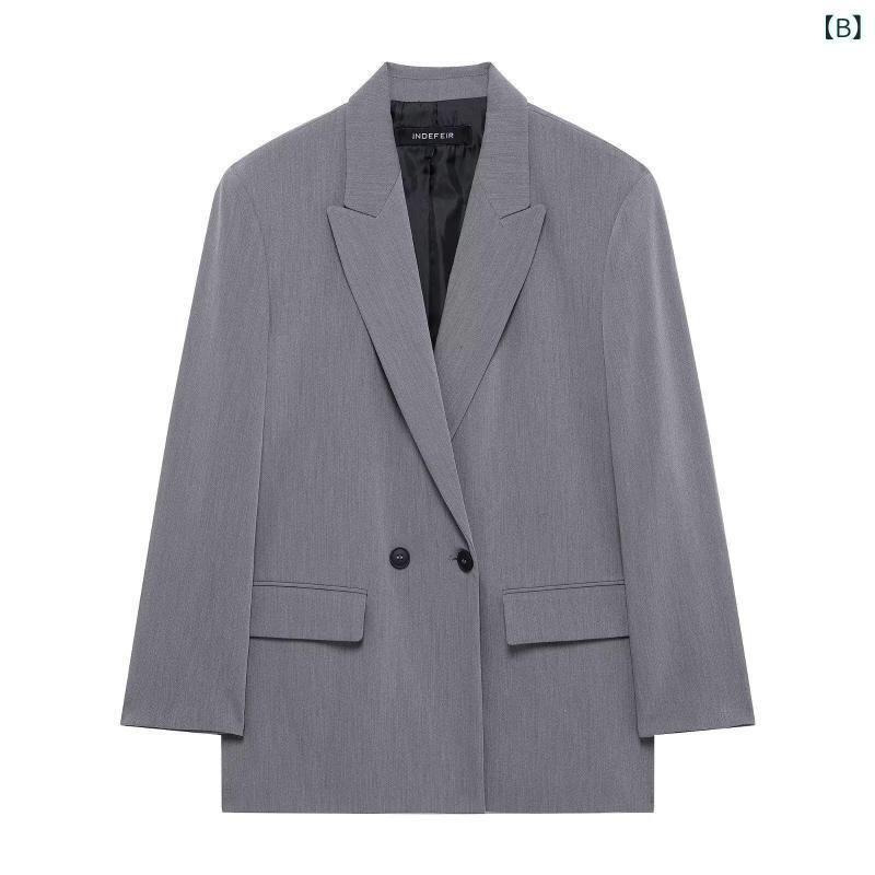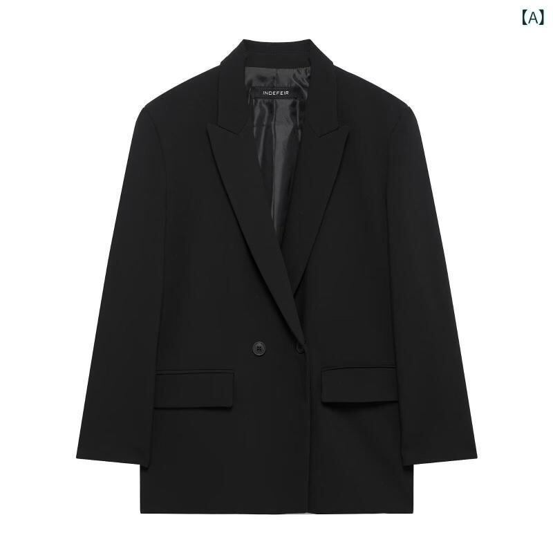 テーラードジャケット レディース 春夏 欧米風 ファッション ゆったり オーバーサイズ ダブルブレスト 長袖 無地 混紡素材 ポリエステル ショート丈 アウター オフィス カジュアル きれいめ 羽織り