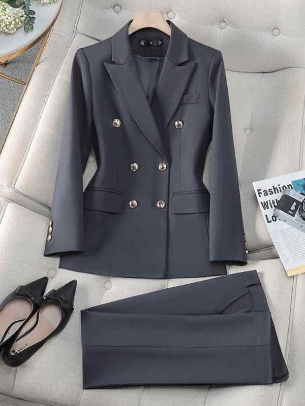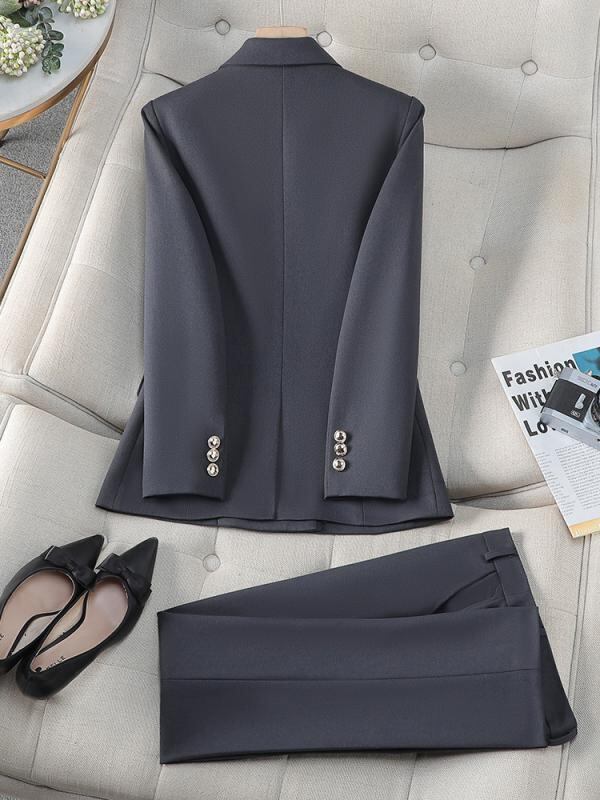 スーツ レディース セットアップ パンツスーツ ジャケット テーラード カーキ グレー ネイビー ポリエステル エレガント 高級感 オフィス ビジネス 通勤 フォーマル