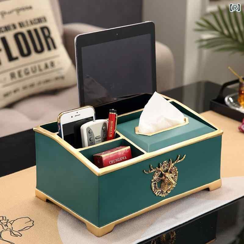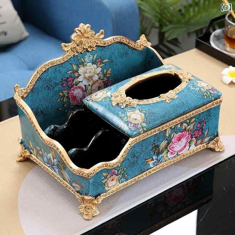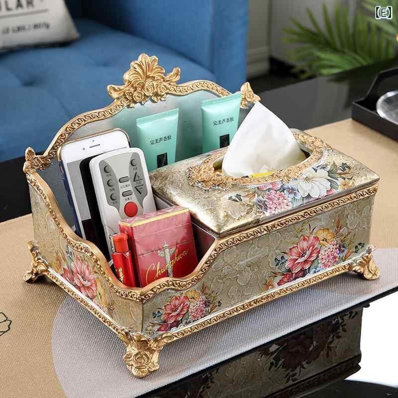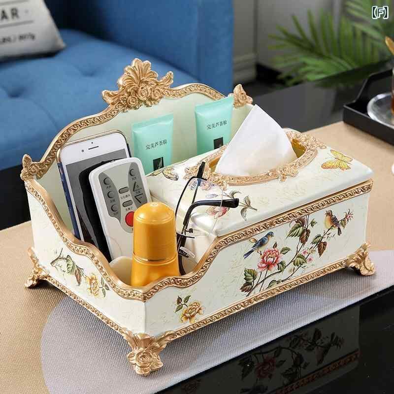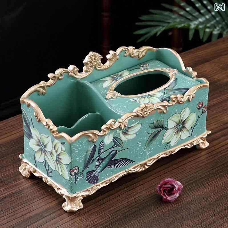 収納ボックス 欧風 アメリカンスタイル 多機能 ティッシュケース リモコンラック リビング 卓上 レトロ調 インテリア 置物 樹脂製 おしゃれ 小物入れ オブジェ