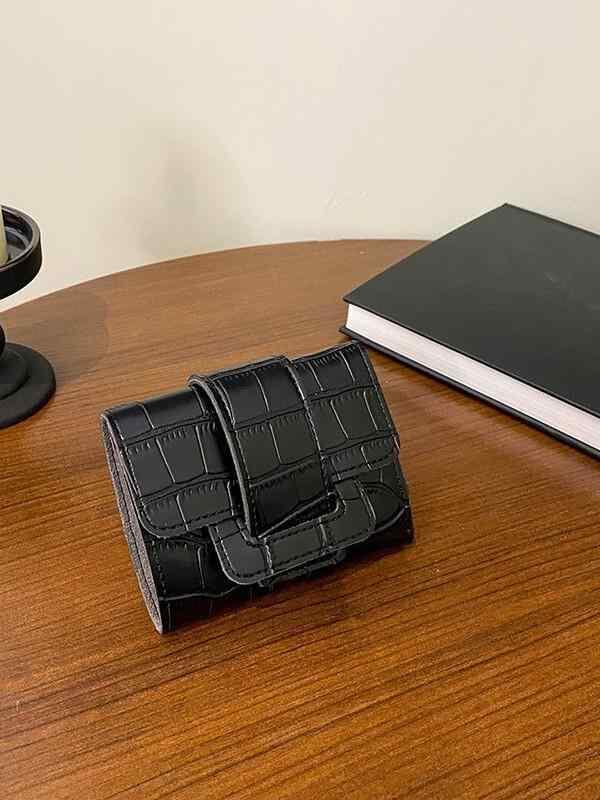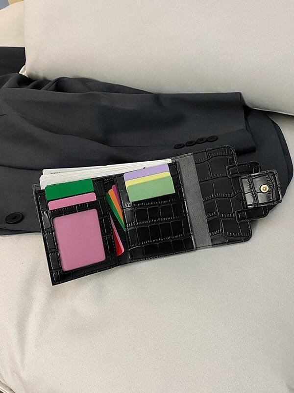 財布 レディース クロコダイル柄 三つ折り シンプル スナップボタン PUレザー 多機能 札入れ 小銭入れ カードケース 韓国ファッション ブラック 普段使い 通勤
