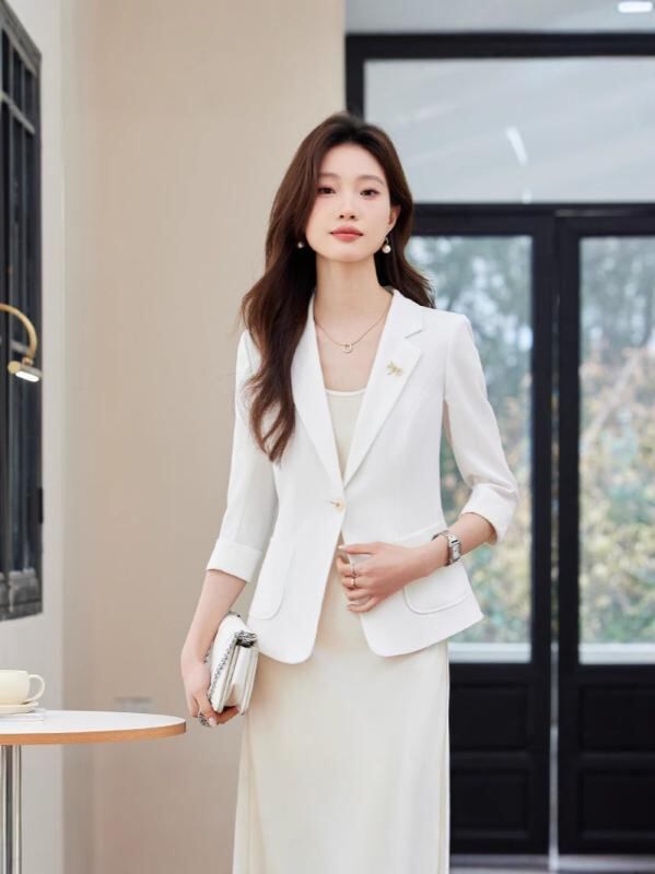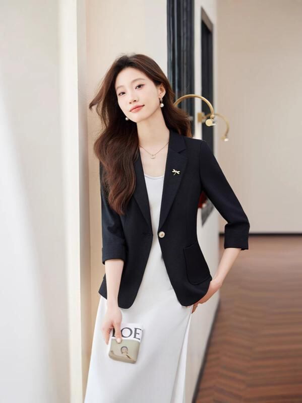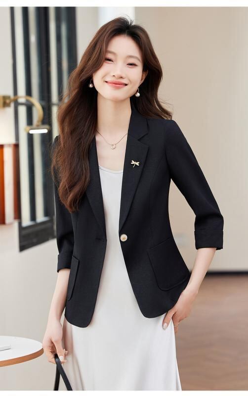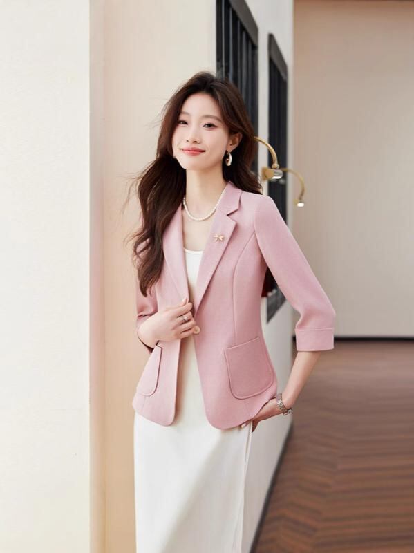 ジャケット レディース 七分袖 ピンク テーラードジャケット ブレザー 春夏 通勤 オフィス ビジネス 仕事着 フォーマル 一つボタン 細身 スリムフィット ポリエステル 無地 エレガント きれいめ