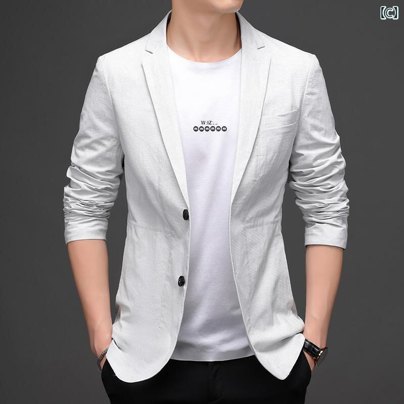 テーラードジャケット メンズ 男性用 カジュアル スリムフィット 細身 春夏 薄手 軽量 綿混紡 ストレッチ 普段使い デイリー 着回し
