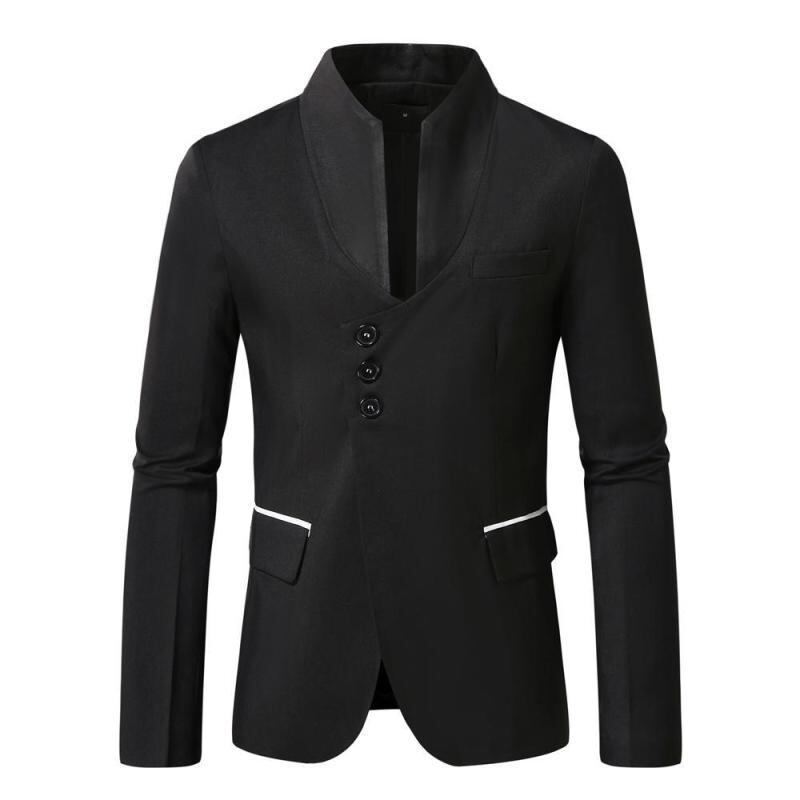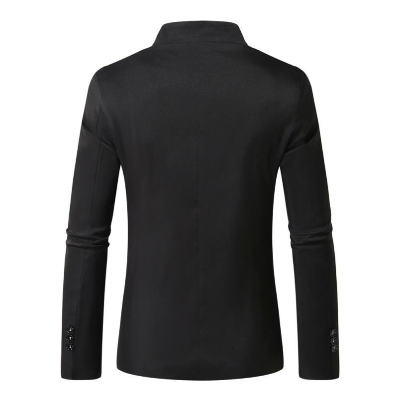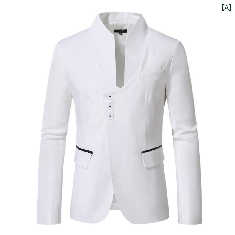 ・機能: 防シワ・フィット: スリム・ネックライン: スタンドカラー・前立て: シングルブレスト3つボタン・スタイル: ブリティッシュ・柄: 無地・生地: コットンブレンド・主な素材: ポリエステル80%・裏地: ポリエステル・着用シーン: カジュアル・ベント: センターベント・対象: 大きいサイズ・加工: パッチワーク/異素材MIX・ディテール: ボタン装飾・着丈: レギュラー・袖丈: 長袖・ポケット: フラップポケット・カラー展開: ホワイト、ブラック、レッド、カーキ・サイズ展開: M、L、XL、XXL・裾デザイン: ストレート・対象年齢: 成人・対象性別: 男性・カテゴリ: カジュアルスーツ