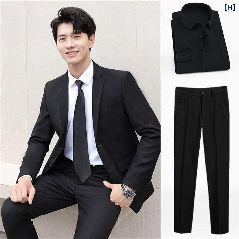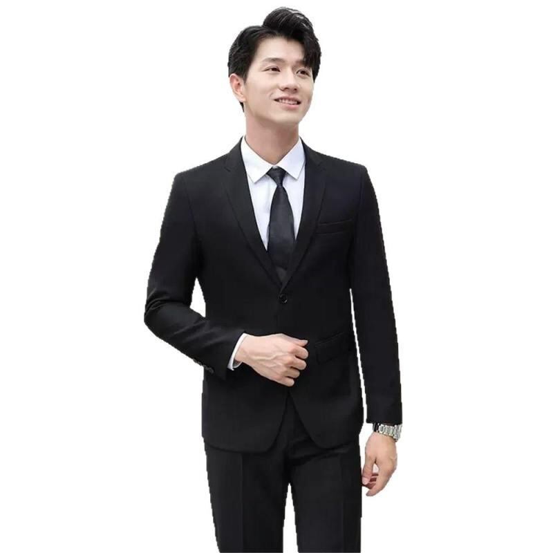 スーツ メンズ 高校生 成人式 卒業式 結婚式 パーティー 礼服 フォーマル カジュアル 韓国風 スリムフィット 高級感 麻 リネン セットアップ ダブルボタン ブラック 春夏