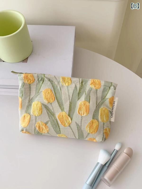 ポーチ レディース 女性用 チューリップ 花柄 大容量 コスメ メイク スキンケア収納 トラベル 洗面用品 持ち運び 便利 日常使い 旅行 インナーバッグ