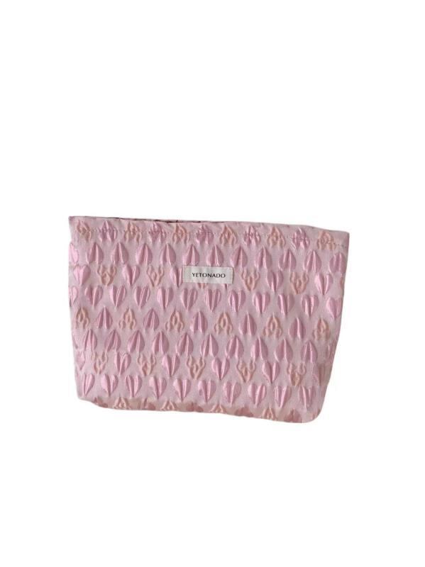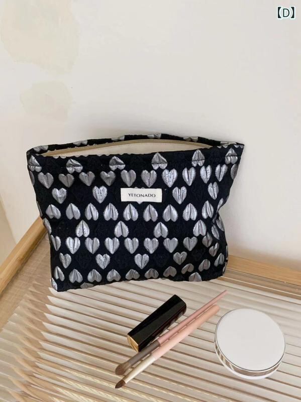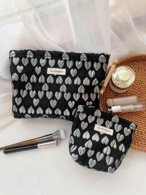 ポーチ レディース 女性用 化粧ポーチ コスメポーチ トラベルポーチ 大容量 クラッチバッグ 手持ち 収納ポーチ 立体ハート柄 かわいい お出かけ 携帯用 普段使い ポリエステル ピンク 黒